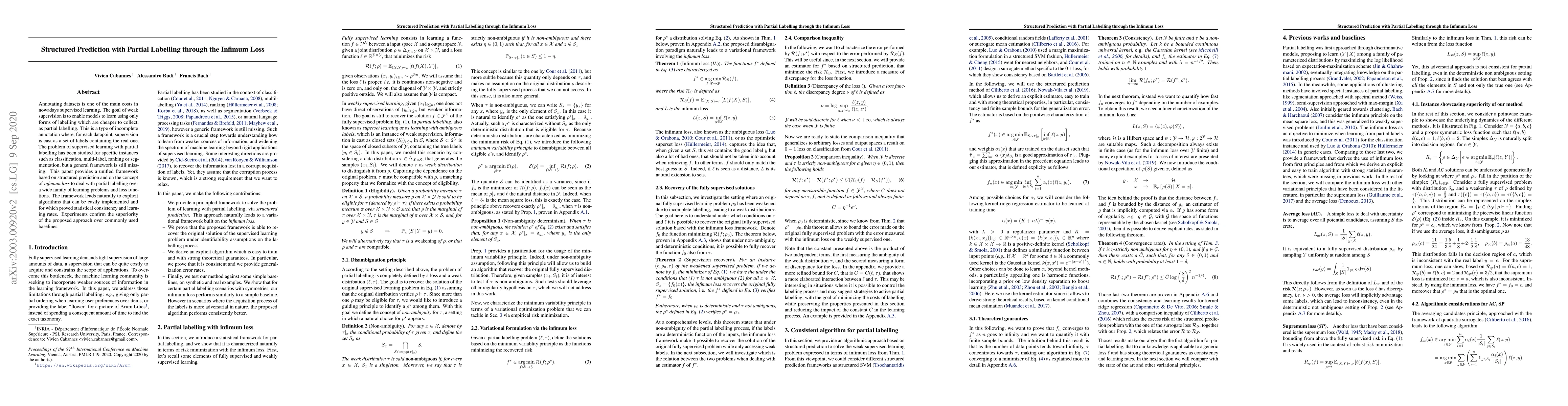 This paper introduces a unified framework for structured prediction using infimum loss to handle partial labelling in various learning tasks. The proposed method demonstrates statistical consistency and superior performance over baselines, addressing the challenge of annotating datasets efficiently.