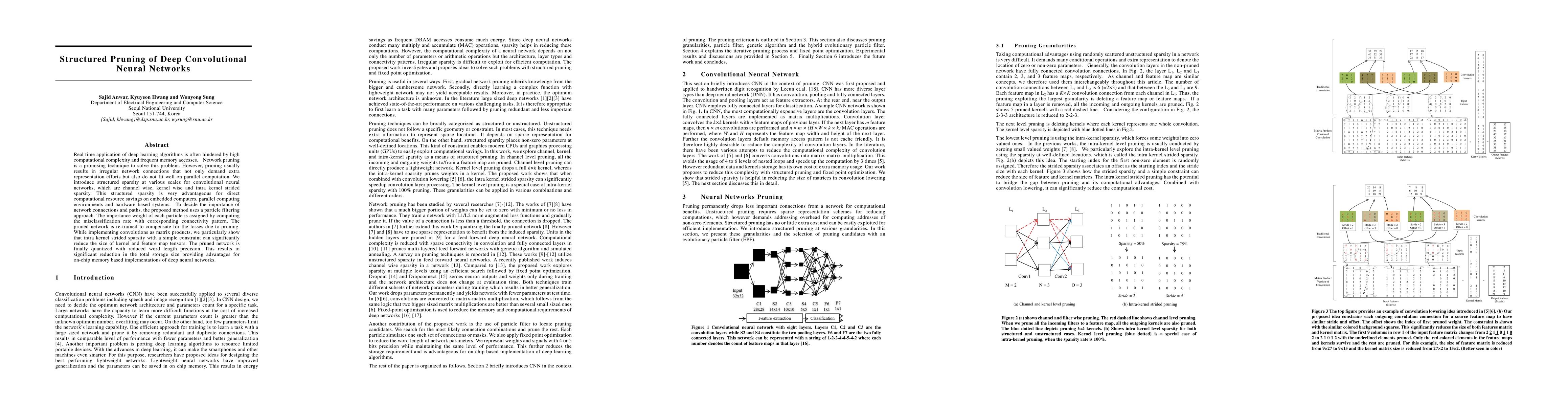 This paper proposes structured pruning techniques for deep convolutional neural networks to reduce computational complexity and memory access. It introduces channel-wise, kernel-wise, and intra-kernel strided sparsity, optimizing networks for parallel computation and embedded systems, and uses particle filtering to determine the importance of connections.