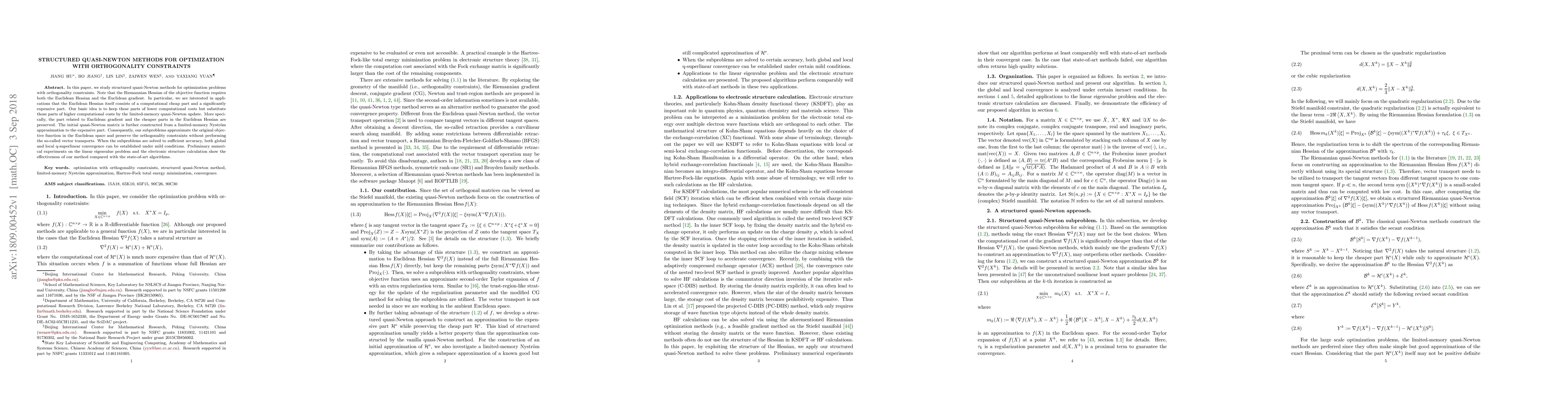 This paper proposes a structured quasi-Newton method for optimizing functions with orthogonality constraints, preserving cheaper parts of the Euclidean Hessian while using limited-memory updates to speed up computation.