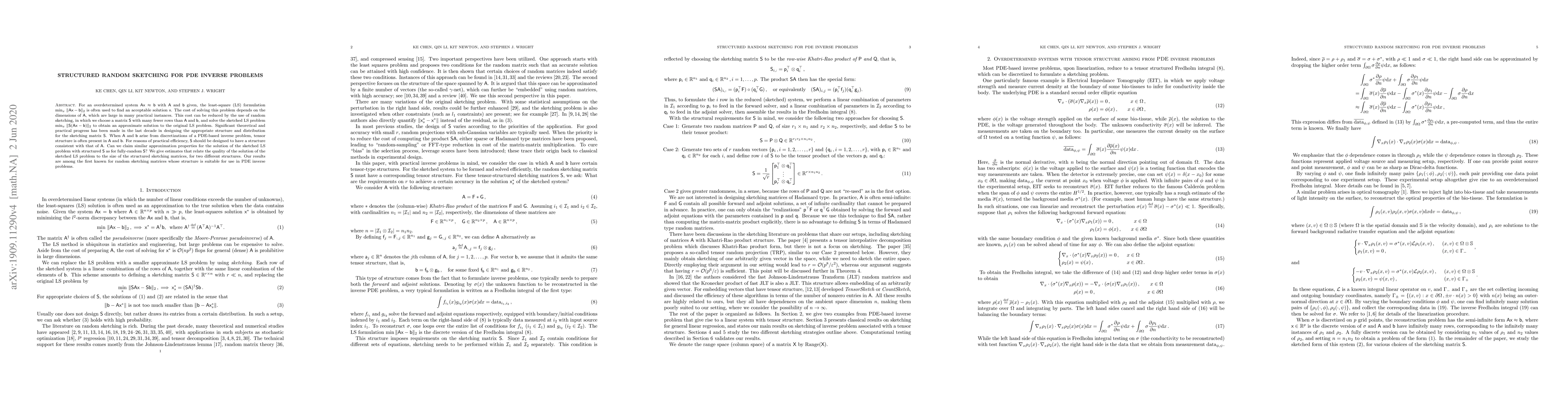 Researchers explore using structured random sketching to solve large-scale PDE inverse problems with reduced computational cost, estimating the quality of solutions for both fully-random and suitably-structured sketching matrices.