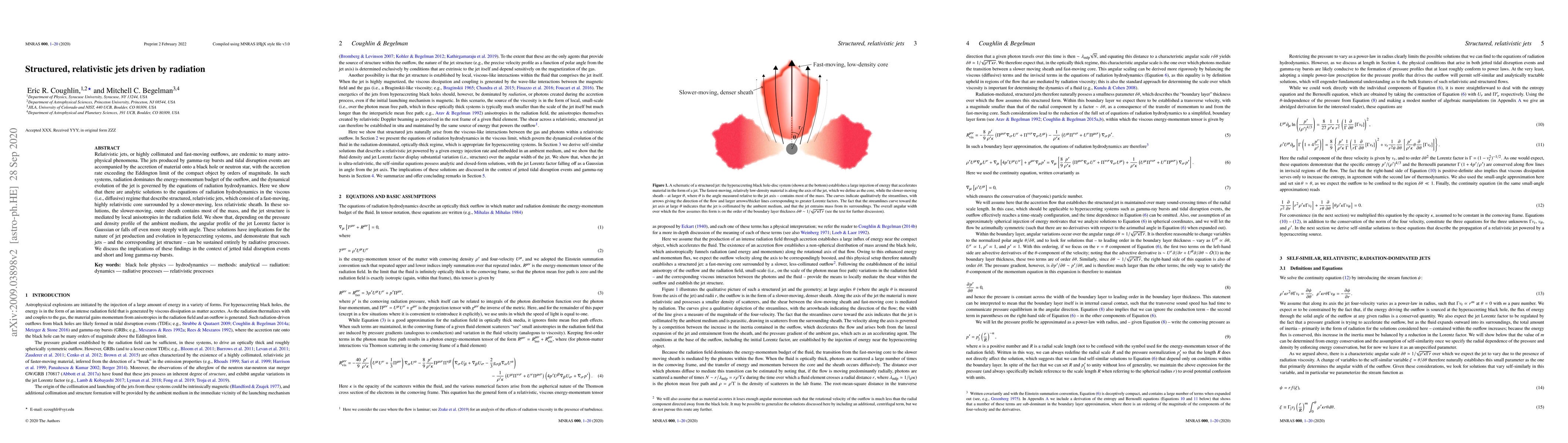 The research derives analytic solutions to the equations of radiation hydrodynamics in the viscous regime, describing structured, relativistic jets driven by radiation in hyperaccreting systems.