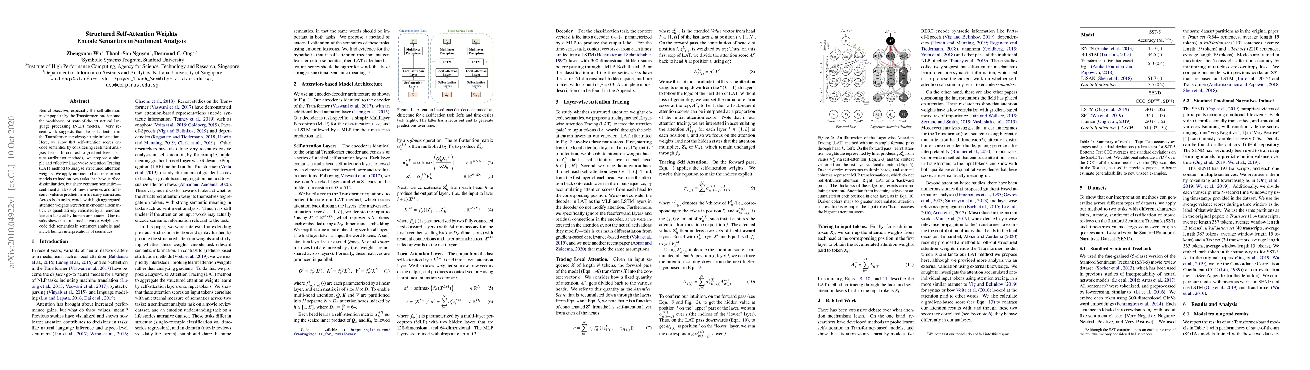 This paper demonstrates that self-attention weights in Transformer models encode semantic information, particularly in sentiment analysis. It introduces a Layer-wise Attention Tracing method to analyze these weights, showing that words with high attention weights are semantically rich in emotional content, validated by human-annotated emotion lexicons.