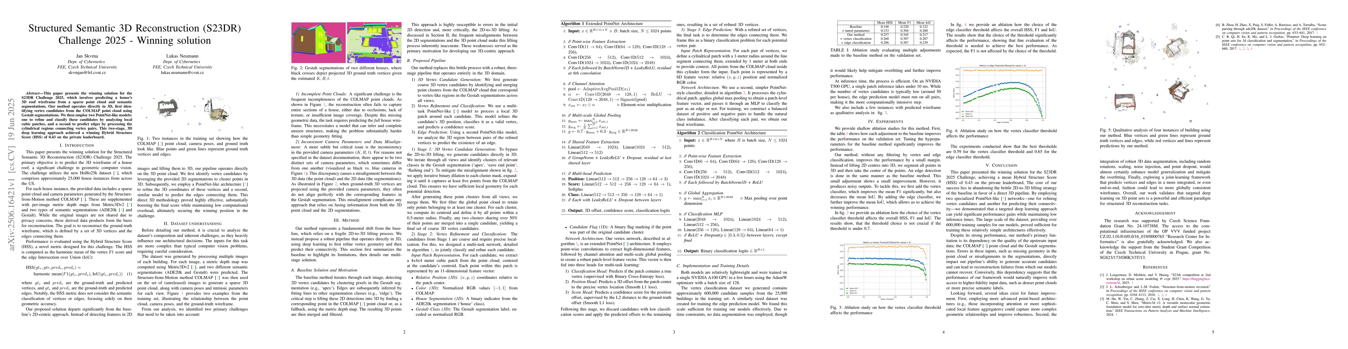 This paper presents the winning solution for the S23DR Challenge 2025, which involves predicting a house's 3D roof wireframe from a sparse point cloud and semantic segmentations. Our method operates directly in 3D, first identifying vertex candidates from the COLMAP point cloud using Gestalt segmentations. We then employ two PointNet-like models: one to refine and classify these candidates by analyzing local cubic patches, and a second to predict edges by processing the cylindrical regions connecting vertex pairs. This two-stage, 3D deep learning approach achieved a winning Hybrid Structure Score (HSS) of 0.43 on the private leaderboard.