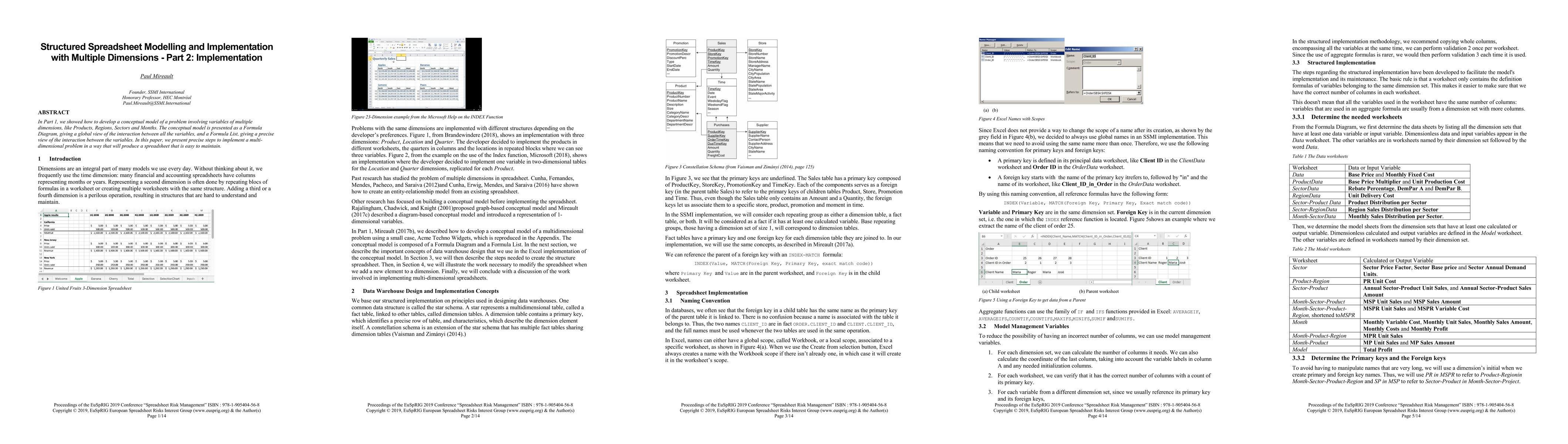 Part 2 of the research paper outlines practical steps to implement a multi-dimensional spreadsheet model, following the conceptual Formula Diagram and Formula List developed in Part 1, ensuring the spreadsheet is straightforward to update and maintain.
