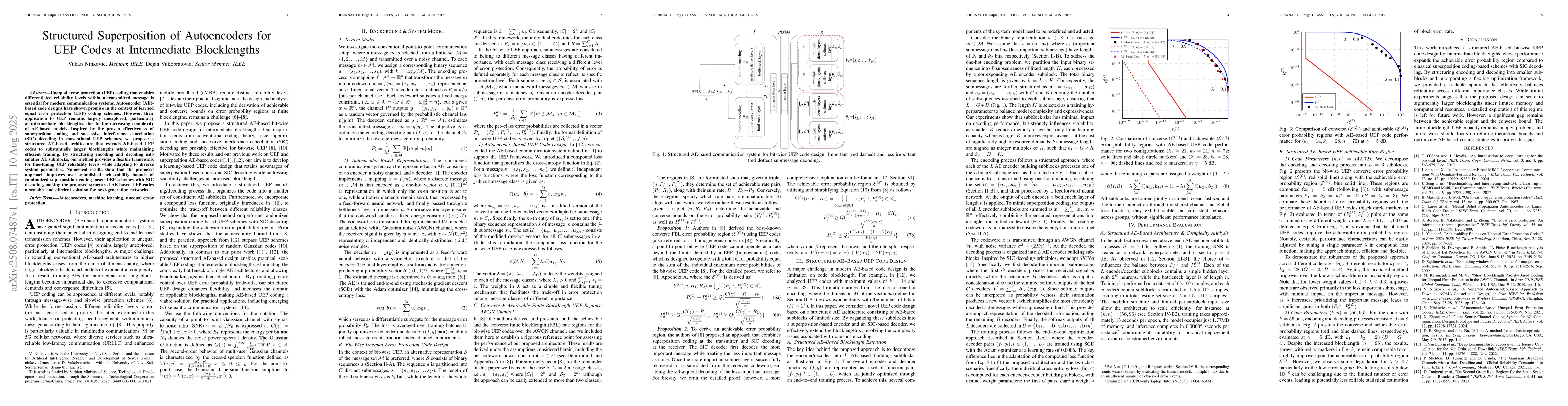The paper introduces a structured AE-based UEP code design that extends AE-based UEP codes to larger blocklengths while maintaining efficient training through smaller AE subblocks and superposition coding with SIC decoding.