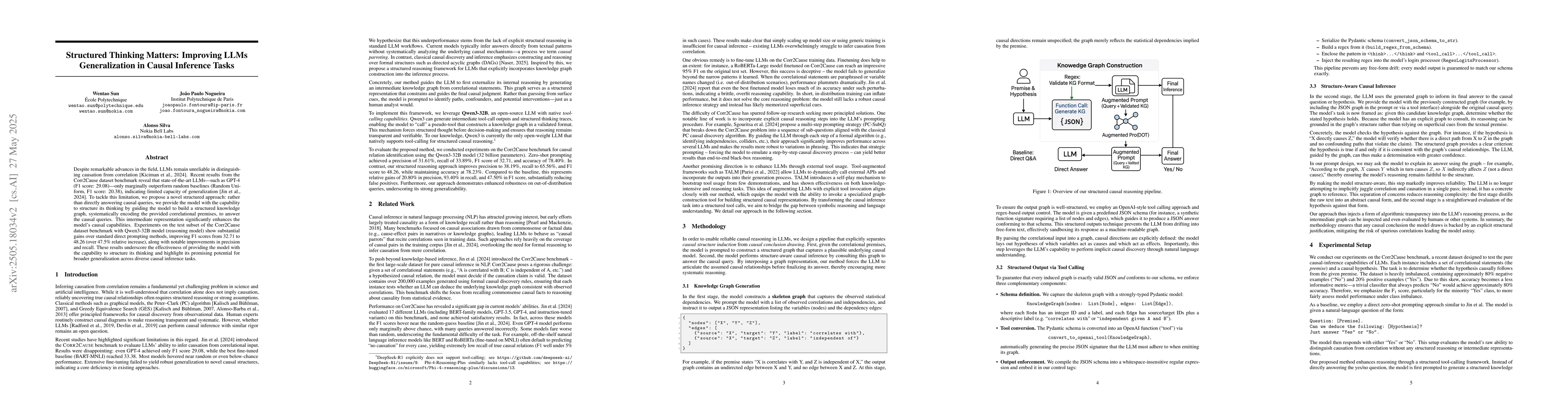 A new approach to improving LLMs' generalization in causal inference tasks shows significant gains, increasing F1 scores from 32.71 to 48.26 with a structured knowledge graph method.