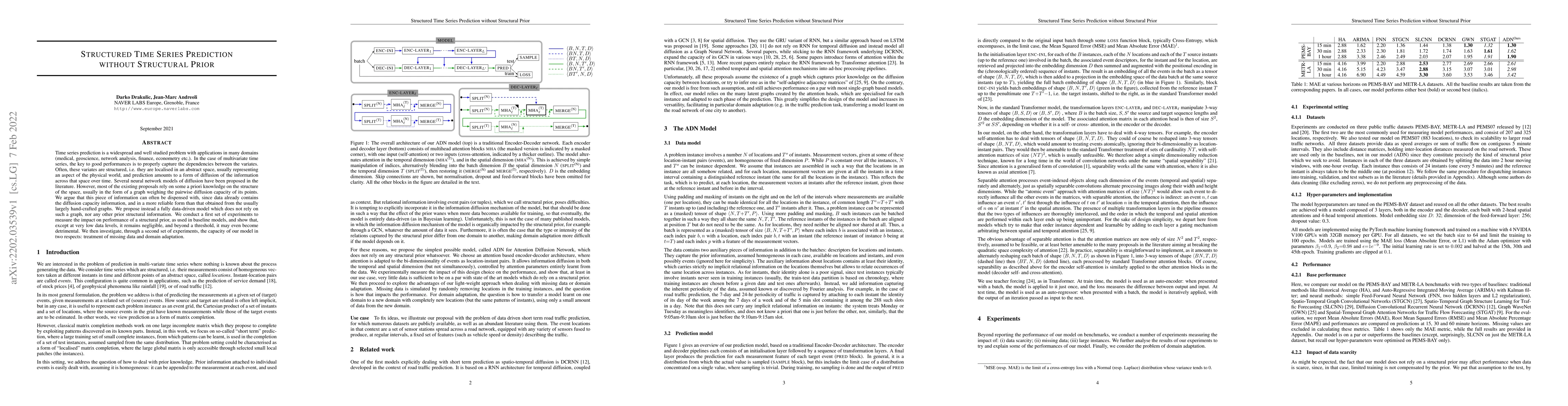Time series prediction is a widespread and well studied problem with applications in many domains (medical, geoscience, network analysis, finance, econometry etc.). In the case of multivariate time series, the key to good performances is to properly capture the dependencies between the variates. Often, these variates are structured, i.e. they are localised in an abstract space, usually representing an aspect of the physical world, and prediction amounts to a form of diffusion of the information across that space over time. Several neural network models of diffusion have been proposed in the literature. However, most of the existing proposals rely on some a priori knowledge on the structure of the space, usually in the form of a graph weighing the pairwise diffusion capacity of its points. We argue that this piece of information can often be dispensed with, since data already contains the diffusion capacity information, and in a more reliable form than that obtained from the usually largely hand-crafted graphs. We propose instead a fully data-driven model which does not rely on such a graph, nor any other prior structural information. We conduct a first set of experiments to measure the impact on performance of a structural prior, as used in baseline models, and show that, except at very low data levels, it remains negligible, and beyond a threshold, it may even become detrimental. We then investigate, through a second set of experiments, the capacity of our model in two respects: treatment of missing data and domain adaptation.