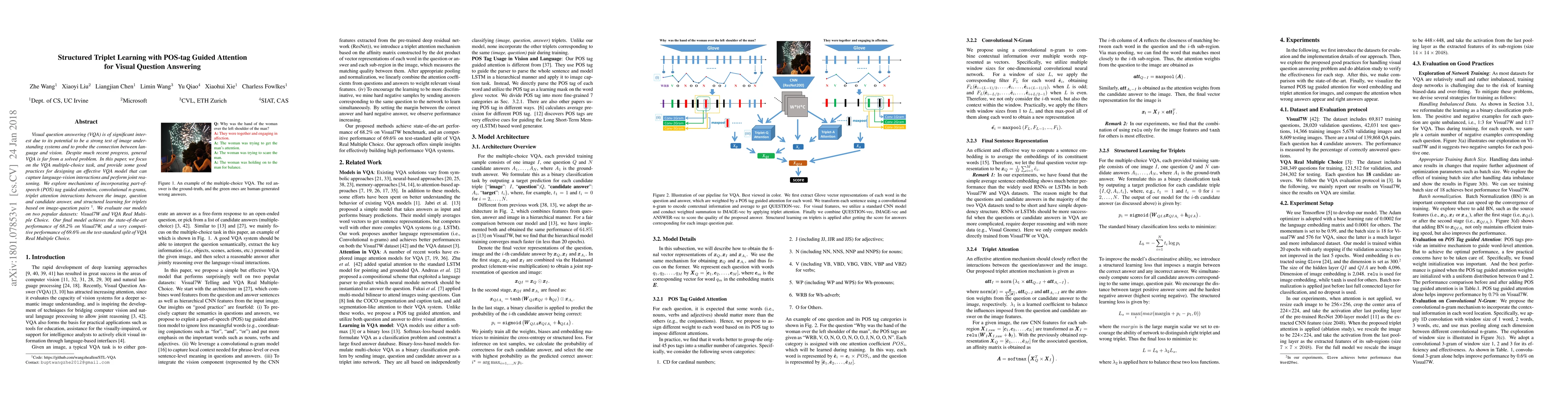Visual question answering (VQA) is of significant interest due to its potential to be a strong test of image understanding systems and to probe the connection between language and vision. Despite much recent progress, general VQA is far from a solved problem. In this paper, we focus on the VQA multiple-choice task, and provide some good practices for designing an effective VQA model that can capture language-vision interactions and perform joint reasoning. We explore mechanisms of incorporating part-of-speech (POS) tag guided attention, convolutional n-grams, triplet attention interactions between the image, question and candidate answer, and structured learning for triplets based on image-question pairs. We evaluate our models on two popular datasets: Visual7W and VQA Real Multiple Choice. Our final model achieves the state-of-the-art performance of 68.2% on Visual7W, and a very competitive performance of 69.6% on the test-standard split of VQA Real Multiple Choice.