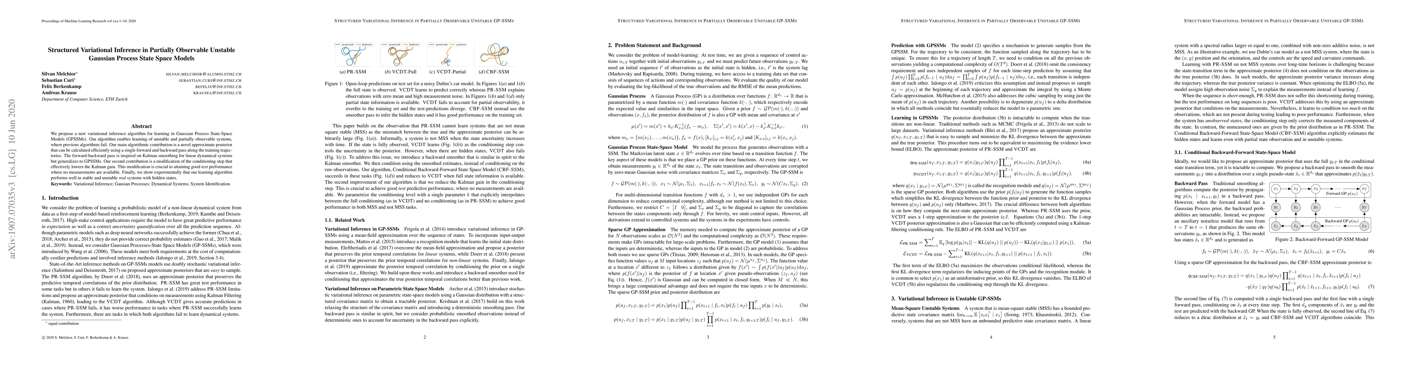 This paper introduces a novel variational inference algorithm for Gaussian Process State-Space Models (GPSSMs) that efficiently handles unstable and partially observable systems. The key contributions include a new approximate posterior and a modified conditioning step to improve performance in unseen conditions.