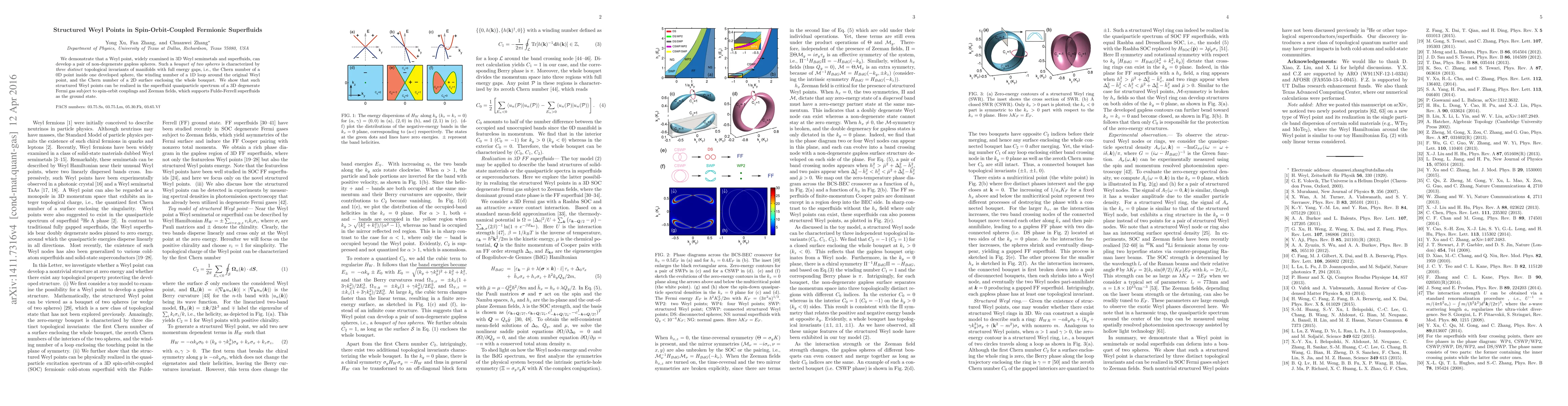 This paper explores the emergence of a structured Weyl point in spin-orbit coupled fermionic superfluids, characterized by three topological invariants, and demonstrates its realization in the superfluid quasiparticle spectrum of a 3D degenerate Fermi gas under spin-orbit couplings and Zeeman fields.