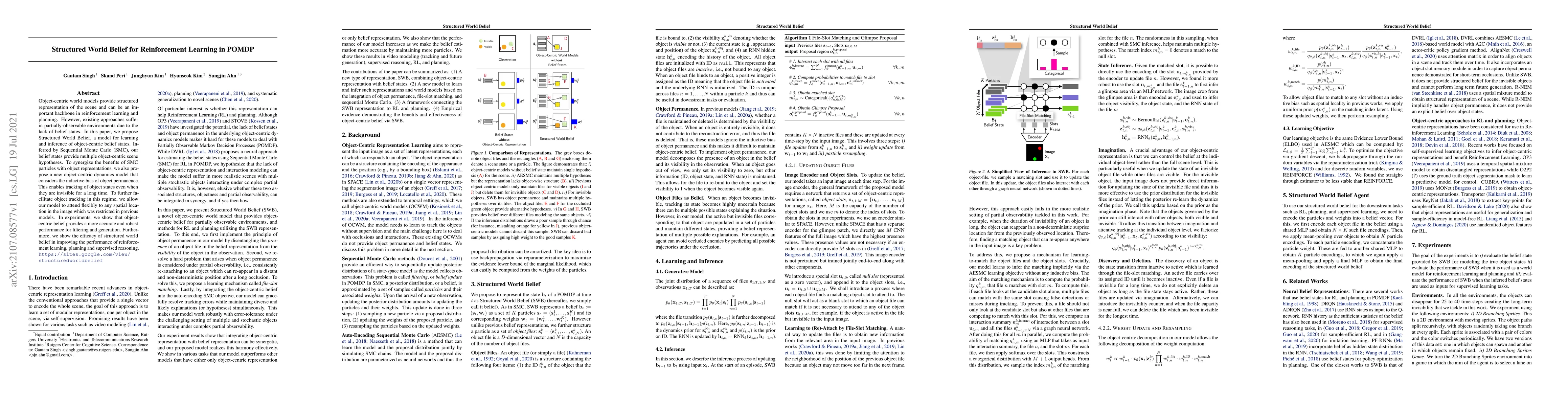 This paper introduces Structured World Belief, a model for learning object-centric belief states in partially-observable environments using Sequential Monte Carlo. It enhances reinforcement learning by tracking object states through an object-centric dynamics model, improving performance in filtering, generation, and planning tasks.