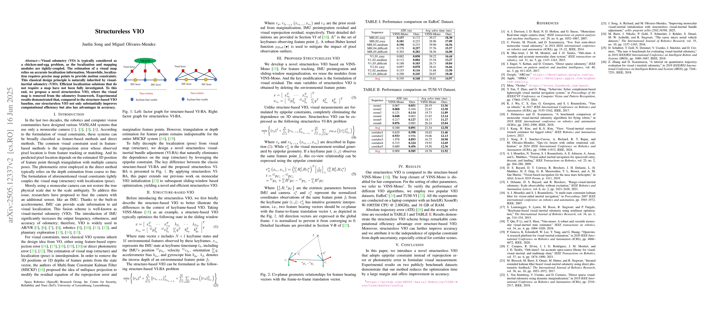 This work is novel by proposing a structureless VIO approach, which differs from existing structure-based VIO methods by eliminating the reliance on a visual map for localization.