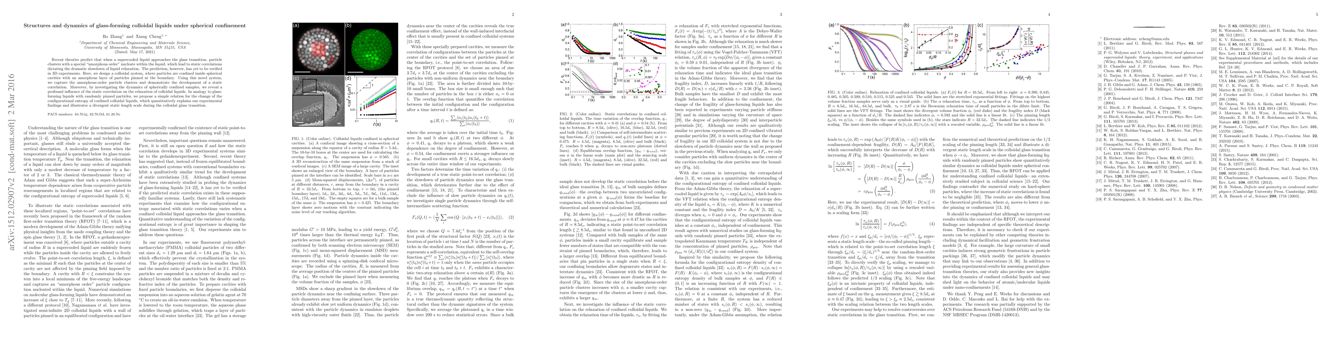 This study investigates the formation of amorphous-order particle clusters in supercooled colloidal liquids confined within spherical cavities, demonstrating static correlations and their impact on relaxation dynamics. The findings reveal a profound influence of these correlations on colloidal liquid dynamics and propose a relation for the configurational entropy change during the glass transition.