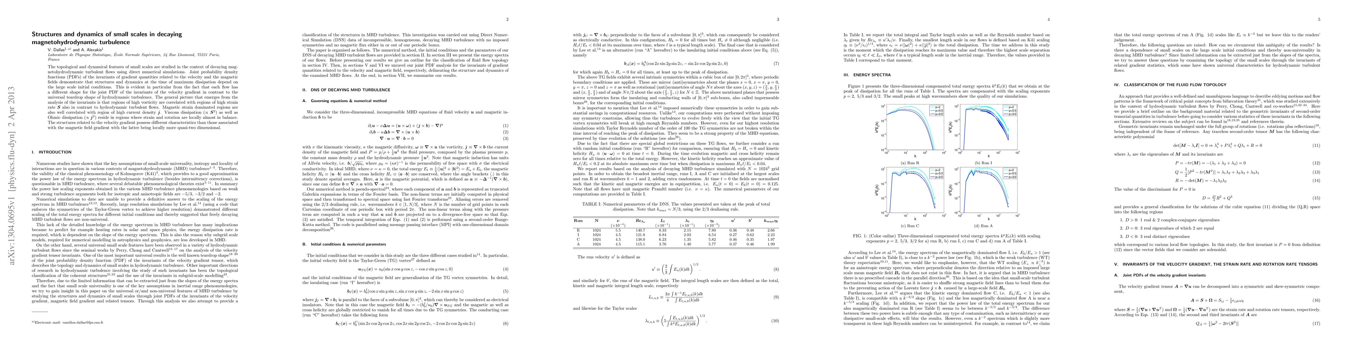 Researchers studied small-scale structures in decaying magnetohydrodynamic turbulence using direct numerical simulations, finding that local balance between strain and rotation is linked to magnetic dissipation, unlike hydrodynamic turbulent flows.