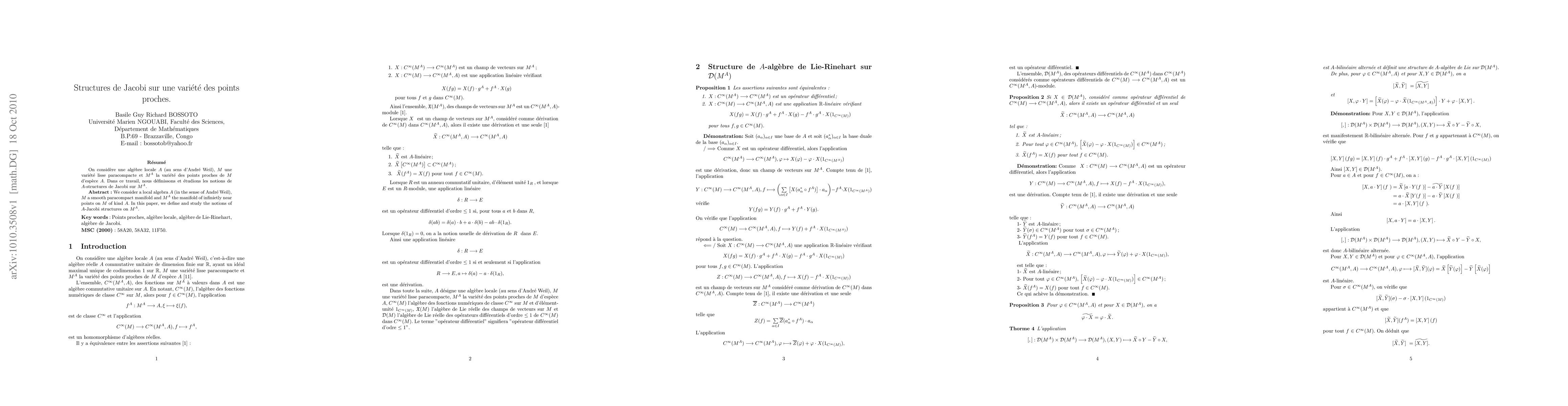 This paper introduces A-Jacobi structures on a manifold of infinitely near points with algebraic properties, exploring their definitions and implications for smooth paracompact manifolds.