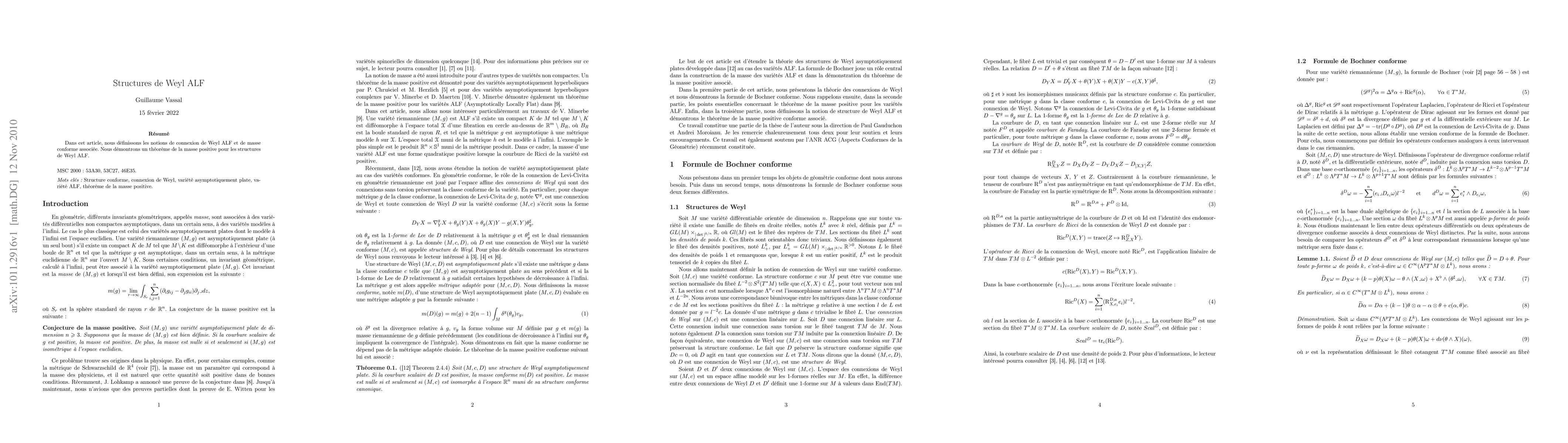 In this paper, we introduce the notions of ALF Weyl connection and of associated mass, and we prouve the positive mass theorem for the ALF Weyl structures.