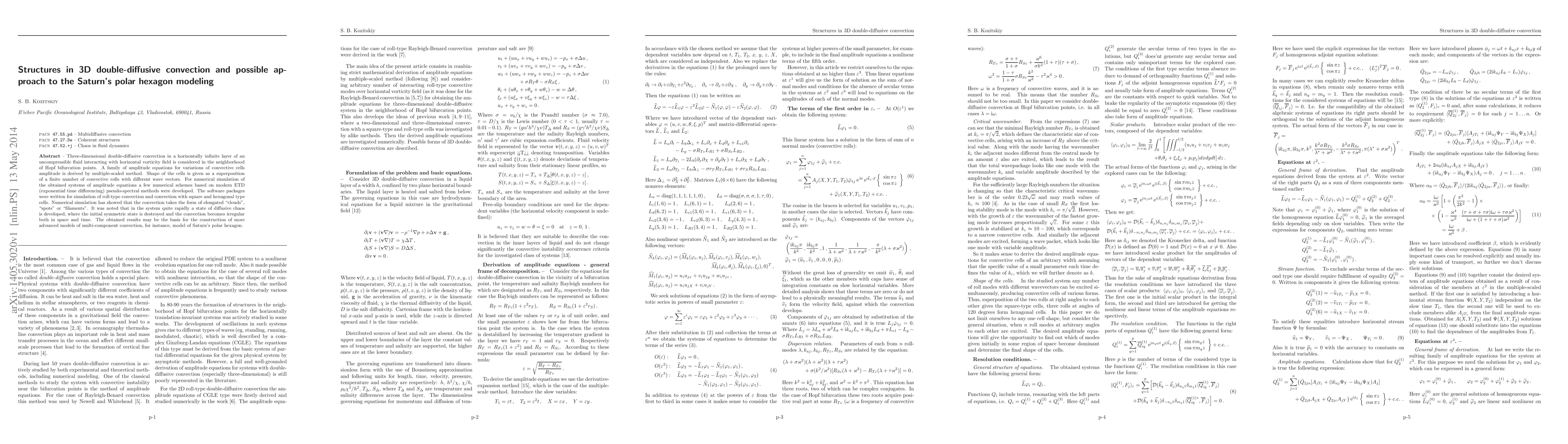 This paper investigates 3D double-diffusive convection in fluids near Hopf bifurcation points, deriving a family of amplitude equations and simulating them using modern ETD pseudo-spectral methods. The simulations reveal chaotic convection patterns that may inform advanced models, including a potential model for Saturn's polar hexagon.