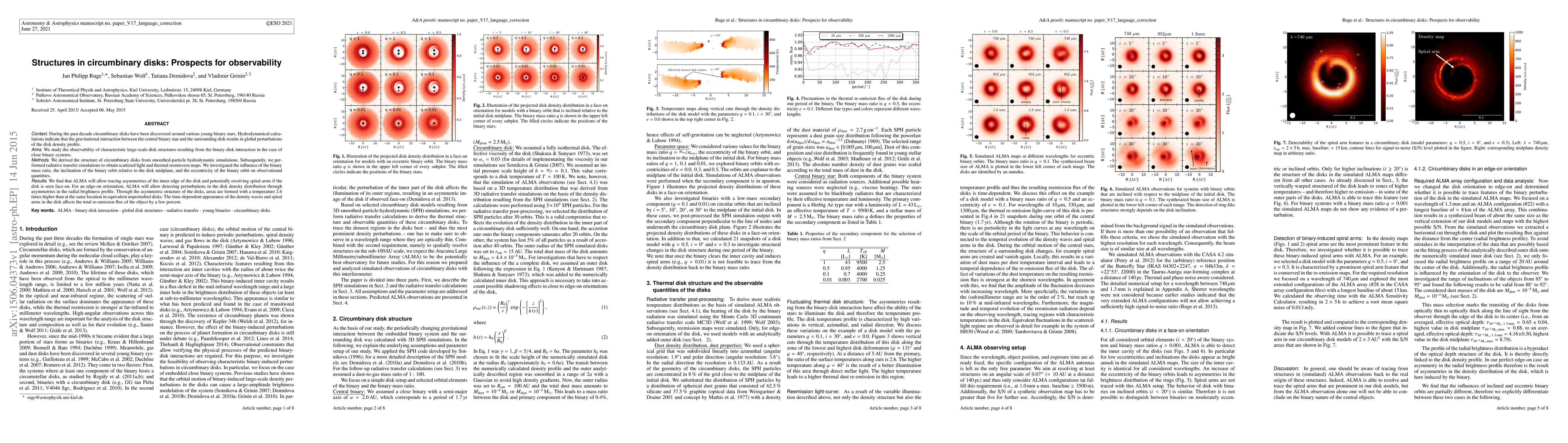 Researchers study the formation of large-scale structures in circumbinary disks around young binary stars, finding that ALMA can detect asymmetries and potentially resolve spiral arms, with significant temperature differences at affected areas.