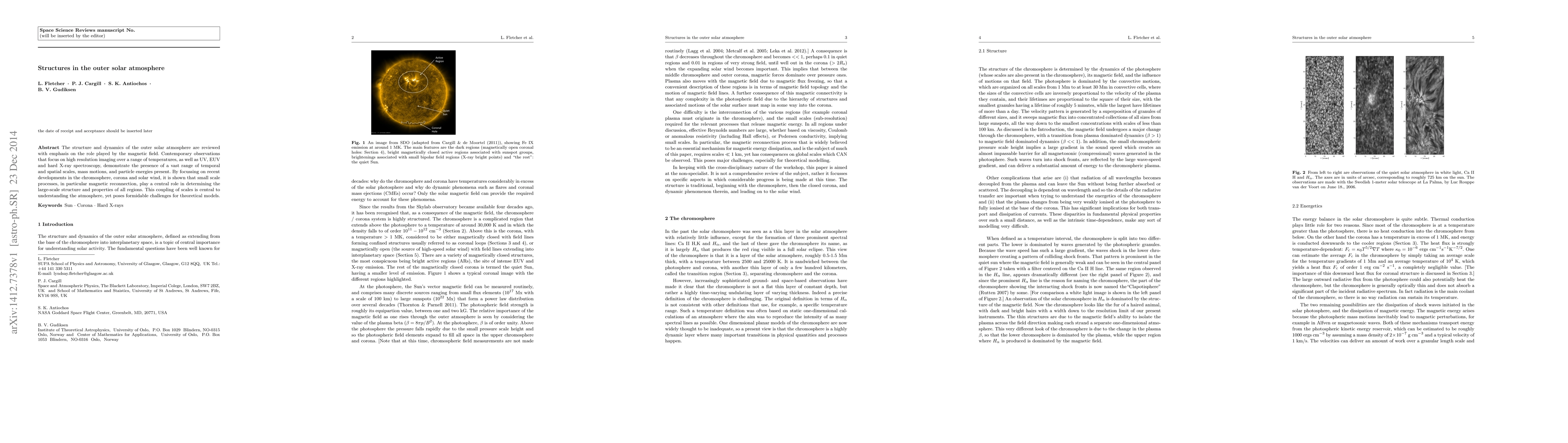 The paper reviews the outer solar atmosphere's structure, emphasizing magnetic field's role. It highlights recent high-resolution observations revealing diverse temporal and spatial scales, mass motions, and particle energies. Small-scale processes like magnetic reconnection are crucial in shaping large-scale atmospheric properties, though they present significant modeling challenges.