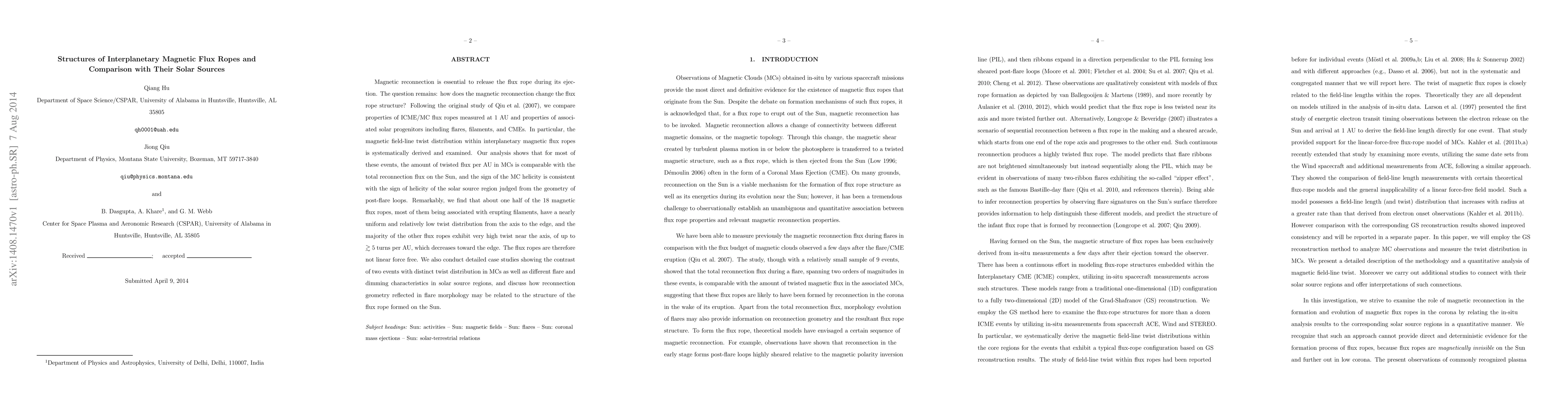 This paper investigates the structural changes of interplanetary magnetic flux ropes (ICME/MC) due to magnetic reconnection and compares them with their solar sources. It finds that the twist distribution in flux ropes varies significantly, with some having uniform low twist and others exhibiting high twist near the axis, suggesting non-linear force-free structures.