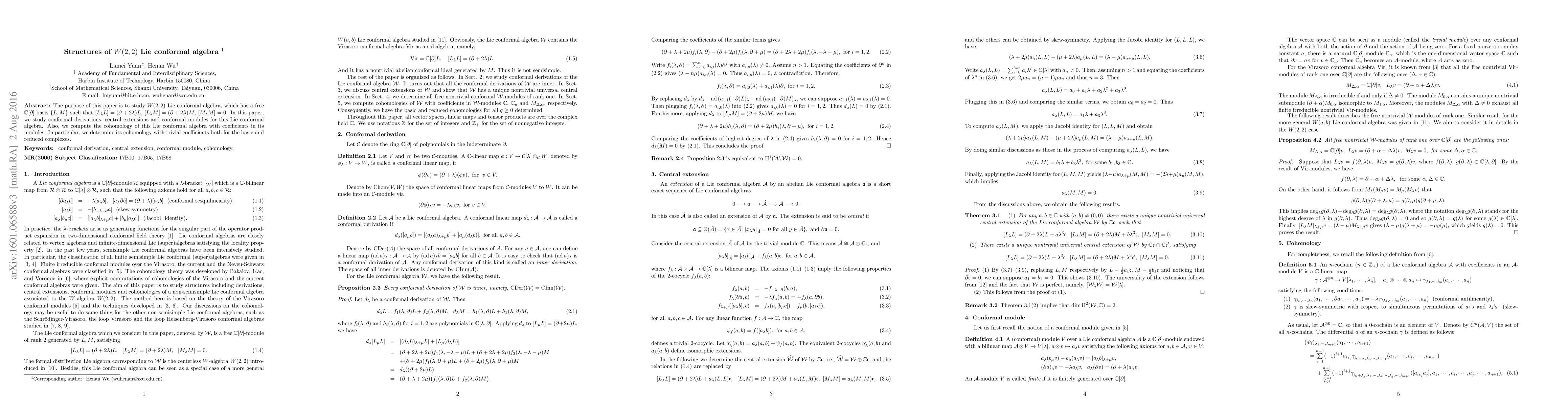 This paper investigates the $W(2,2)$ Lie conformal algebra, focusing on its conformal derivations, central extensions, and modules. It computes the cohomology of the algebra with its modules, determining the cohomology with trivial coefficients for both the basic and reduced complexes.