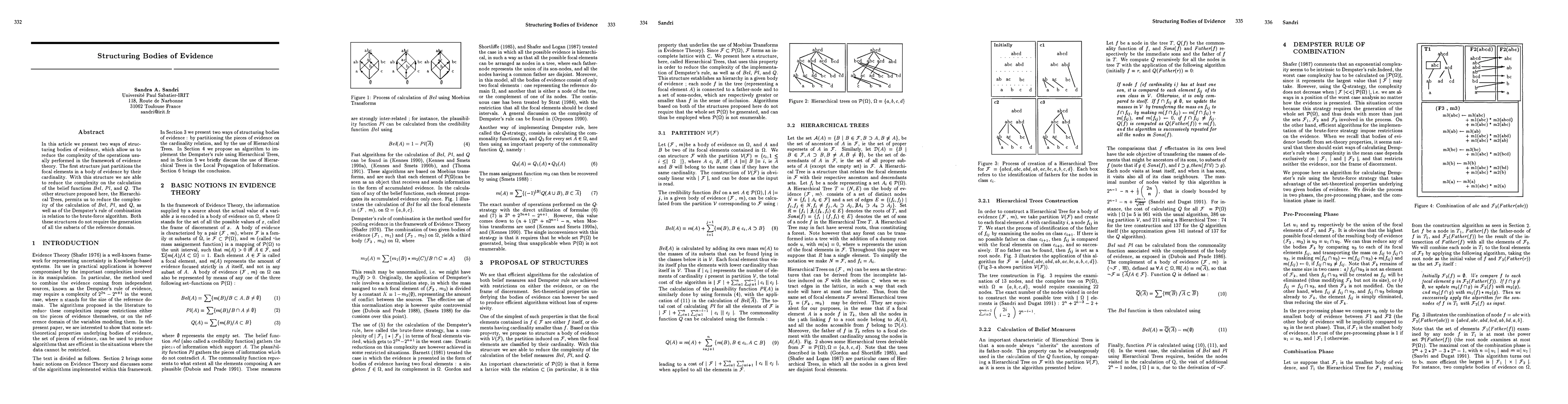 In this article we present two ways of structuring bodies of evidence, which allow us to reduce the complexity of the operations usually performed in the framework of evidence theory. The first structure just partitions the focal elements in a body of evidence by their cardinality. With this structure we are able to reduce the complexity on the calculation of the belief functions Bel, Pl, and Q. The other structure proposed here, the Hierarchical Trees, permits us to reduce the complexity of the calculation of Bel, Pl, and Q, as well as of the Dempster's rule of combination in relation to the brute-force algorithm. Both these structures do not require the generation of all the subsets of the reference domain.