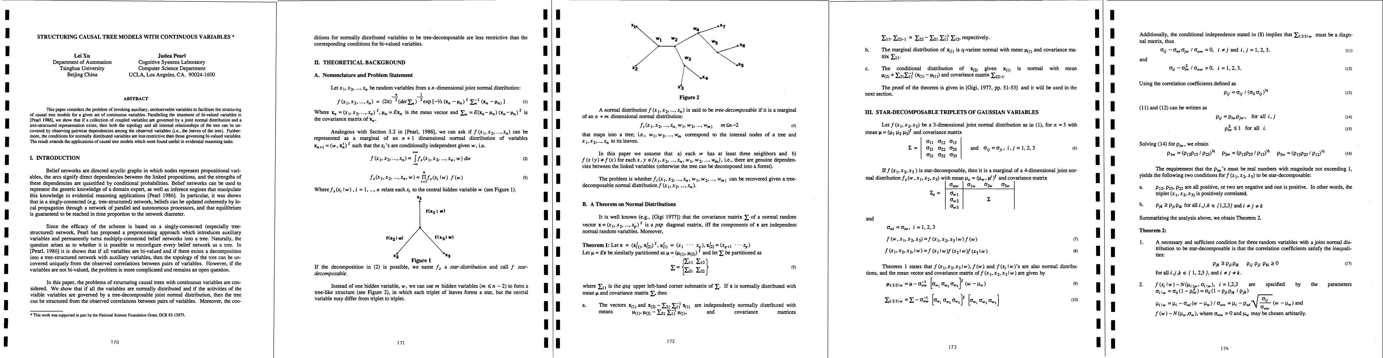 Researchers found that observing pairwise dependencies among continuous variables can help uncover the structure of causal tree models, extending its applications to evidential reasoning tasks.