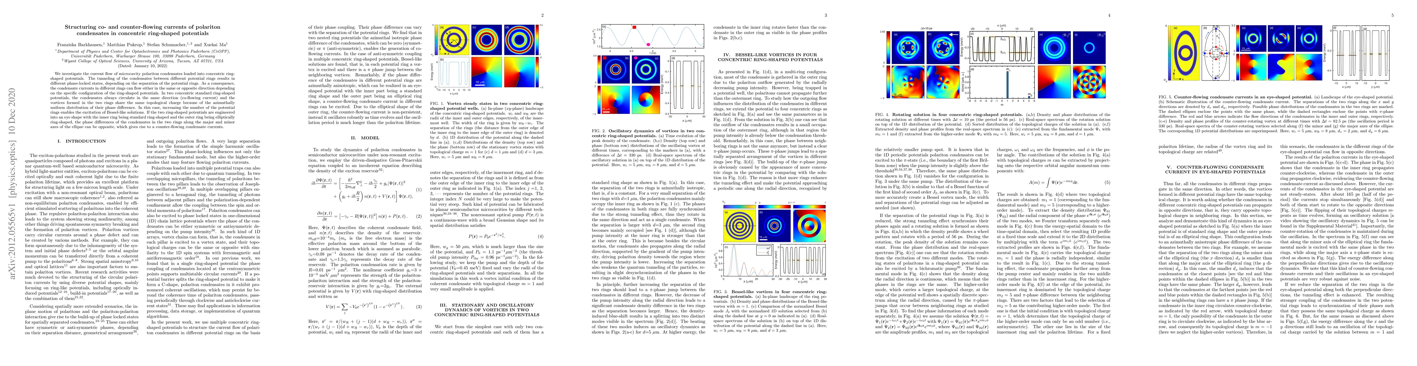 This paper explores the behavior of microcavity polariton condensates in concentric ring-shaped potentials, revealing that their current flow can be either co-flowing or counter-flowing depending on the configuration of the potential rings, with Bessel-like solutions emerging as more rings are added.