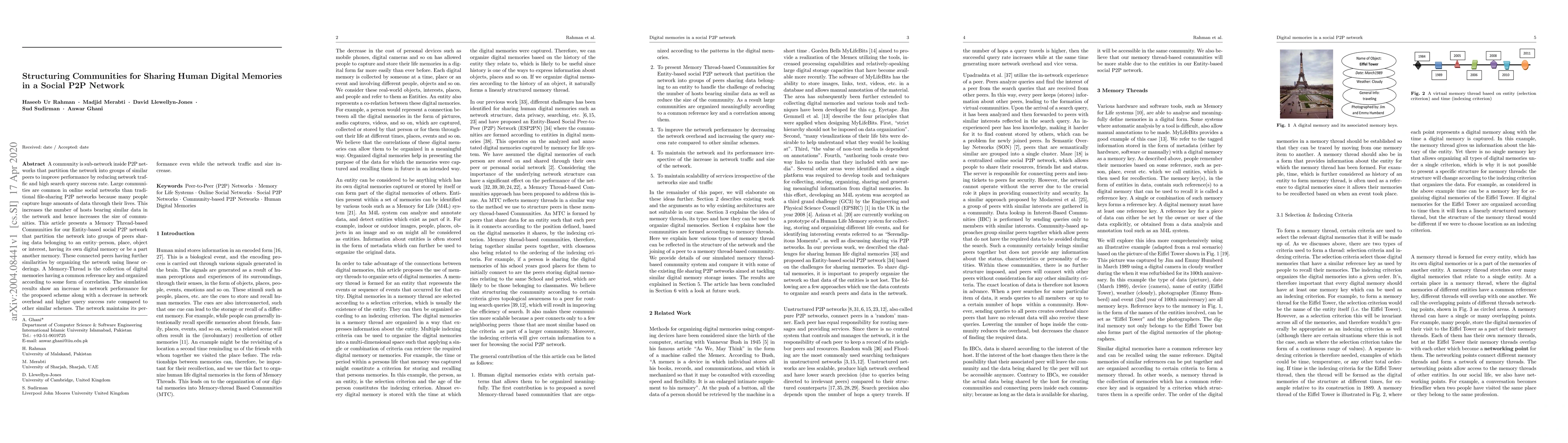 A new approach to structuring communities in peer-to-peer networks for sharing human digital memories improves network performance and query success rates. The proposed scheme increases network efficiency while handling growing traffic and data sizes.