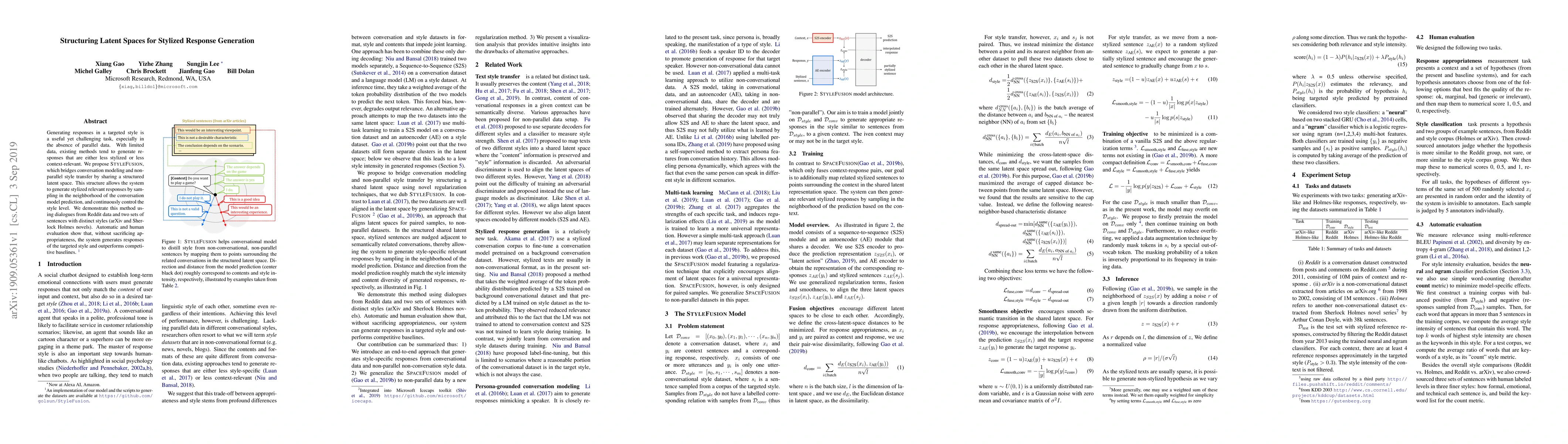 Generating responses in a targeted style is a useful yet challenging task, especially in the absence of parallel data. With limited data, existing methods tend to generate responses that are either less stylized or less context-relevant. We propose StyleFusion, which bridges conversation modeling and non-parallel style transfer by sharing a structured latent space. This structure allows the system to generate stylized relevant responses by sampling in the neighborhood of the conversation model prediction, and continuously control the style level. We demonstrate this method using dialogues from Reddit data and two sets of sentences with distinct styles (arXiv and Sherlock Holmes novels). Automatic and human evaluation show that, without sacrificing appropriateness, the system generates responses of the targeted style and outperforms competitive baselines.