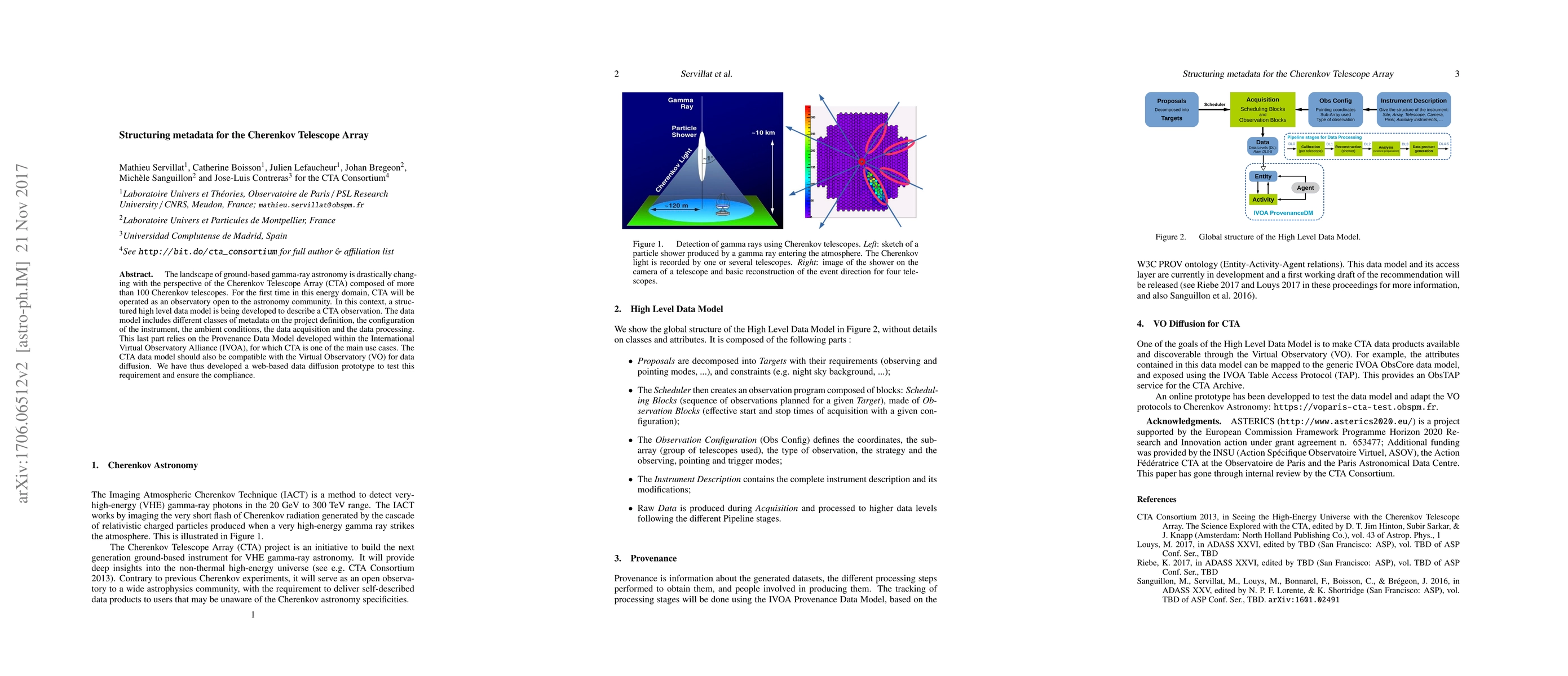 The landscape of ground-based gamma-ray astronomy is drastically changing with the perspective of the Cherenkov Telescope Array (CTA) composed of more than 100 Cherenkov telescopes. For the first time in this energy domain, CTA will be operated as an observatory open to the astronomy community. In this context, a structured high level data model is being developed to describe a CTA observation. The data model includes different classes of metadata on the project definition, the configuration of the instrument, the ambient conditions, the data acquisition and the data processing. This last part relies on the Provenance Data Model developed within the International Virtual Observatory Alliance (IVOA), for which CTA is one of the main use cases. The CTA data model should also be compatible with the Virtual Observatory (VO) for data diffusion. We have thus developed a web-based data diffusion prototype to test this requirement and ensure the compliance.