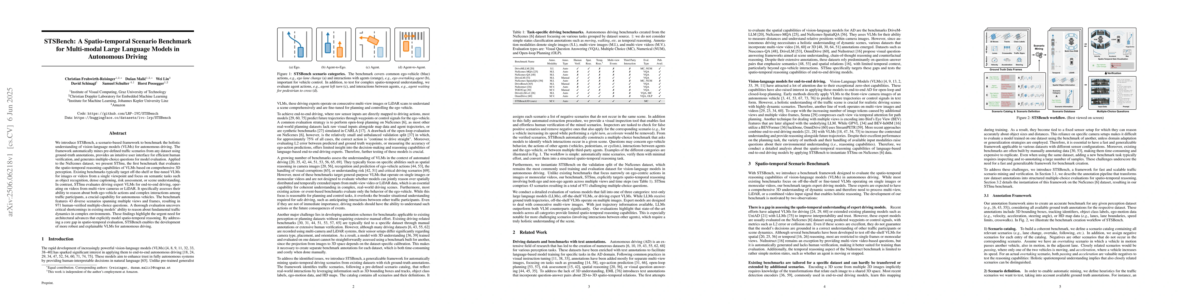 STSBench is a scenario-based framework that benchmarks vision-language models for autonomous driving, highlighting critical shortcomings in existing models' spatio-temporal reasoning capabilities.