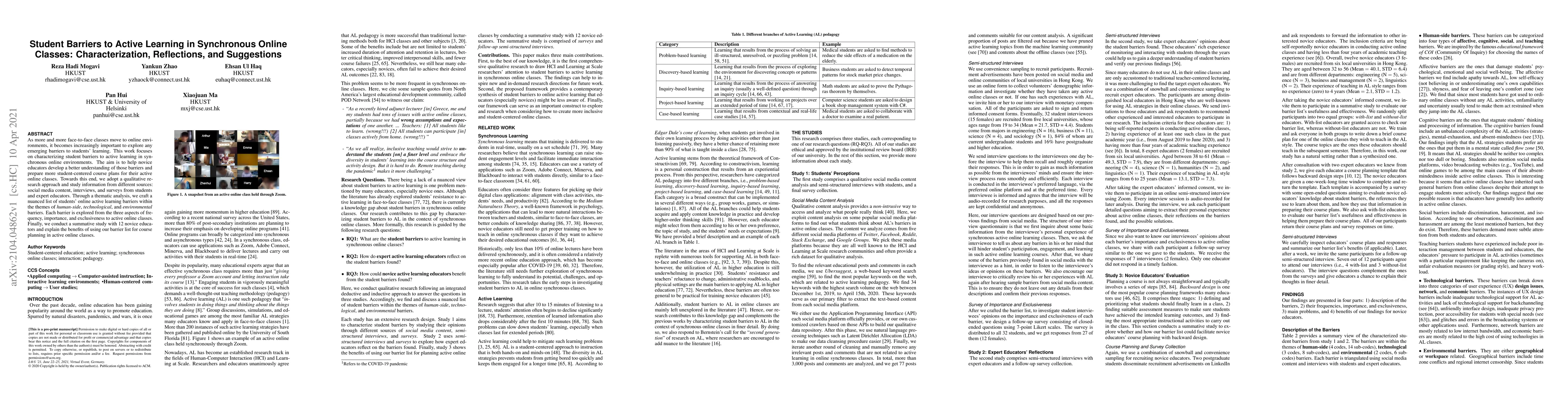 This paper characterizes student barriers to active learning in synchronous online classes through qualitative research, identifying human-side, technological, and environmental barriers. The study aims to assist novice educators in developing more effective, student-centered course plans by providing insights into the frequency, importance, and exclusivity of these barriers.