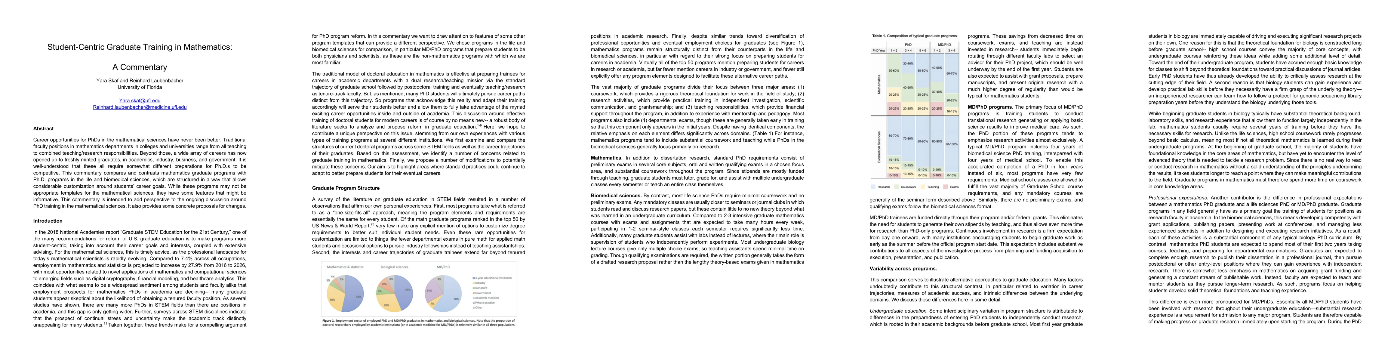 PhD training in mathematics should offer more career customization options, inspired by life sciences programs, to better prepare students for diverse career paths. The commentary proposes changes to mathematical sciences graduate programs.