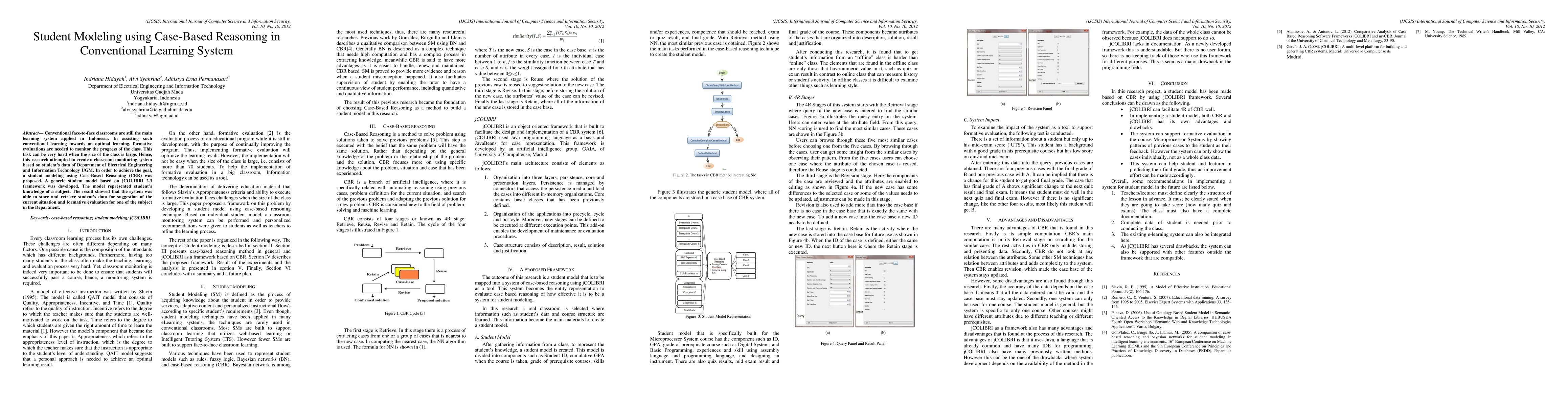 This research proposes a Case-Based Reasoning approach for student modeling to assist in monitoring large classes in conventional face-to-face learning environments in Indonesia. The developed system successfully creates a student model to store and retrieve data, aiding in formative evaluations and suggesting current class progress.