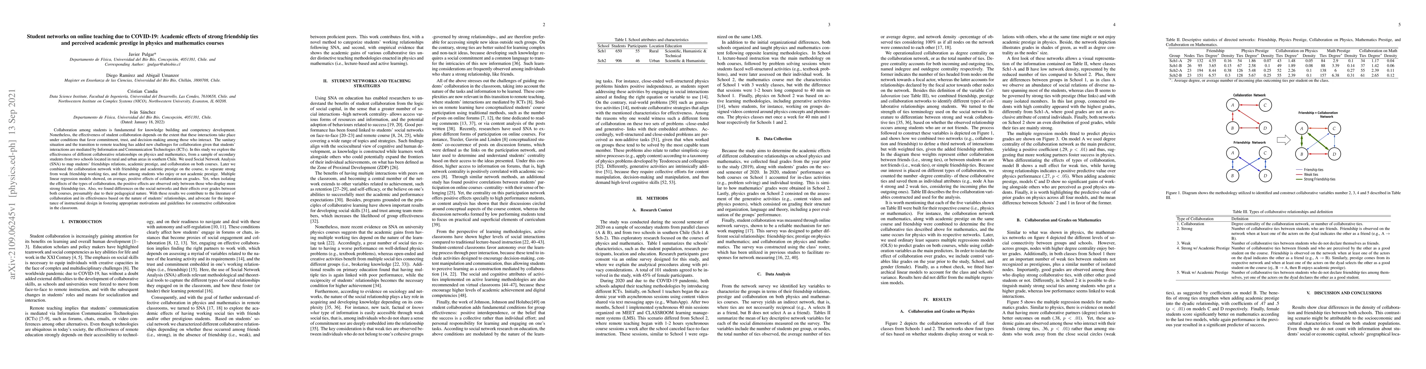 This study examines the impact of student collaboration on academic performance in physics and mathematics during the COVID-19 pandemic, using Social Network Analysis to explore the role of strong friendship ties and perceived academic prestige. Results indicate that collaboration positively affects grades, but only among students with strong friendship ties, highlighting the importance of relationship quality in remote learning environments.