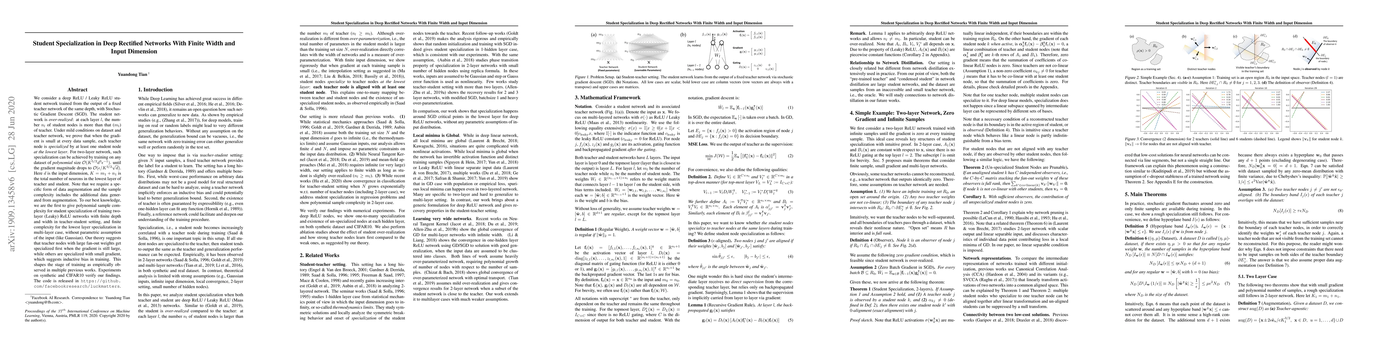 This paper proves that in a deep ReLU network where a student network has more nodes than a teacher network, each teacher node can be specialized by at least one student node at the lowest layer under certain conditions. The study finds polynomial sample complexity for achieving this specialization in two-layer networks and provides insights into the inductive bias shaping the training process.