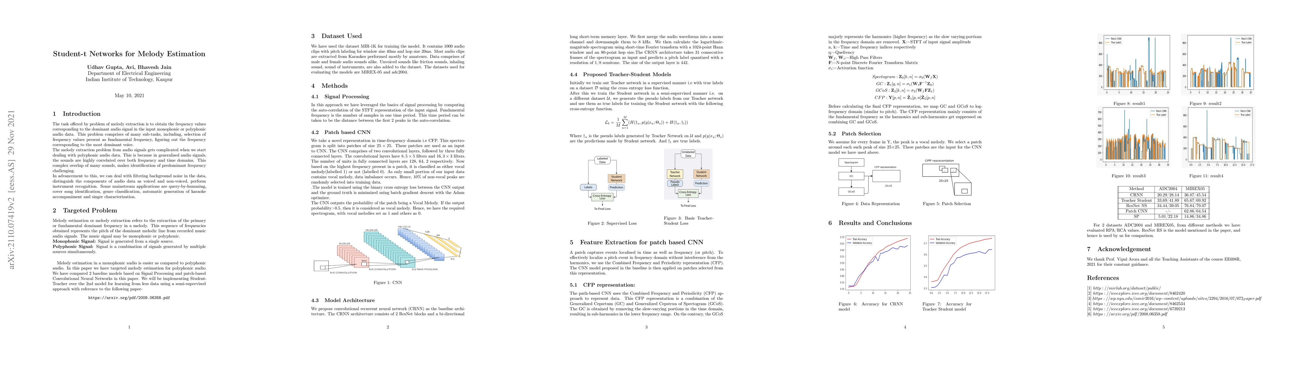This paper proposes Student-t Networks for estimating the dominant melody in both monophonic and polyphonic audio signals, addressing the complexity of sound overlap in polyphonic data to accurately identify the primary melodic frequency.
