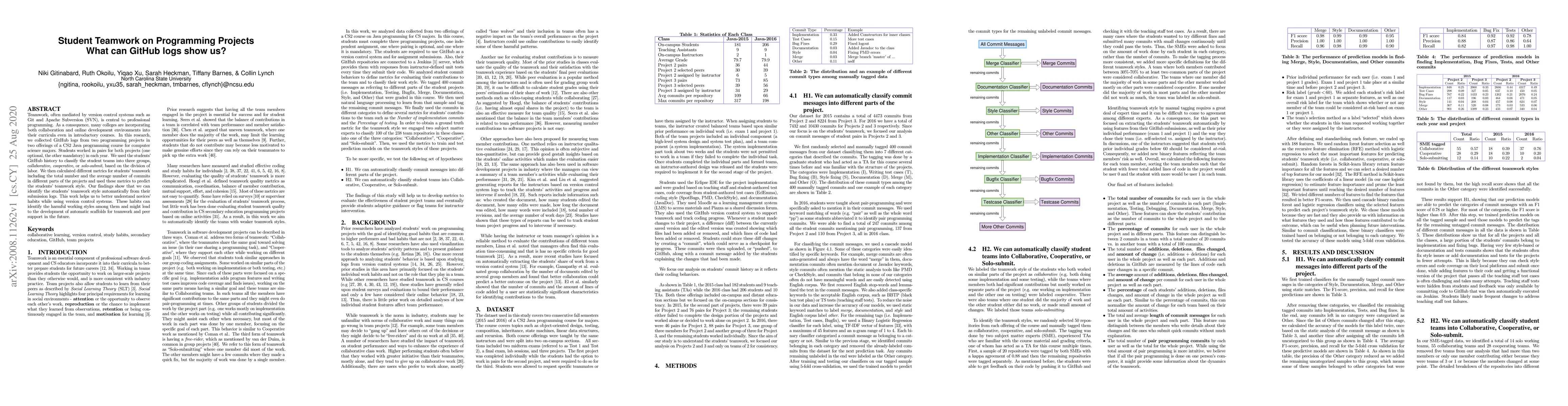 This study analyzes GitHub logs from two programming projects to classify student teamwork styles into collaborative, cooperative, or solo-submit based on their division of labor. The research reveals that students' teamwork habits can be automatically identified from their version control logs, offering insights into novice programmers' collaboration behaviors and potential for developing automated tools to support teamwork.