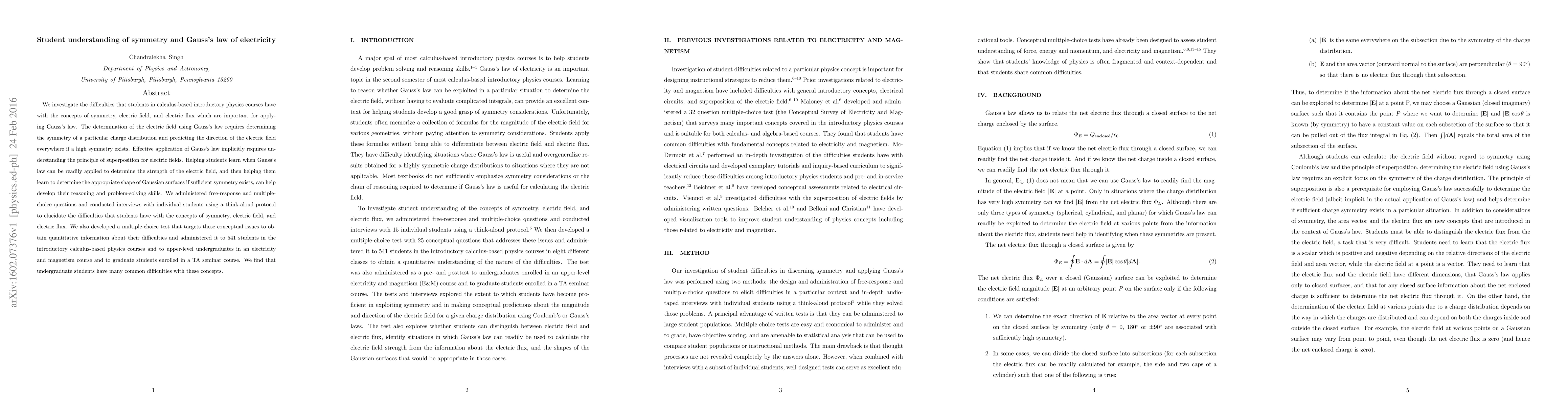 This study explores the challenges faced by students in understanding symmetry, electric fields, and electric flux, which are crucial for applying Gauss's law in physics. The research reveals significant difficulties among undergraduates in grasping these concepts, highlighting the need for improved teaching strategies to enhance their problem-solving skills.