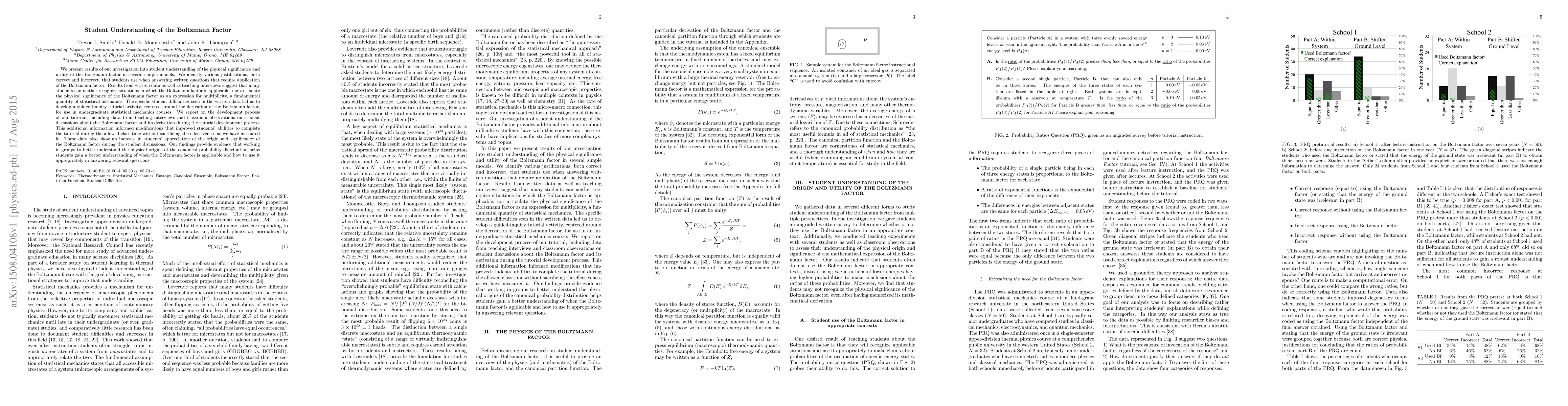 This study investigates student comprehension of the Boltzmann factor, revealing widespread misconceptions and lack of understanding of its physical significance. To address these issues, a guided-inquiry tutorial was developed, which improved students' grasp of the factor's derivation and applicability through collaborative learning and classroom discussions.