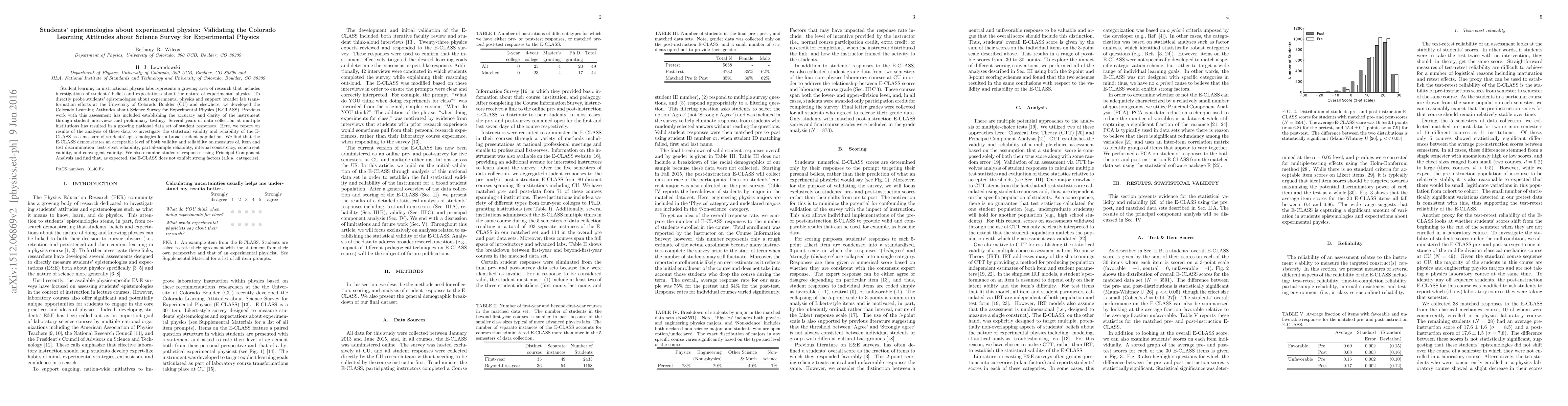 This study validates the Colorado Learning Attitudes about Science Survey for Experimental Physics (E-CLASS) to measure students' epistemologies in experimental physics, confirming its statistical validity and reliability through extensive data analysis and Principal Component Analysis. The E-CLASS shows acceptable levels of validity and reliability across multiple measures.