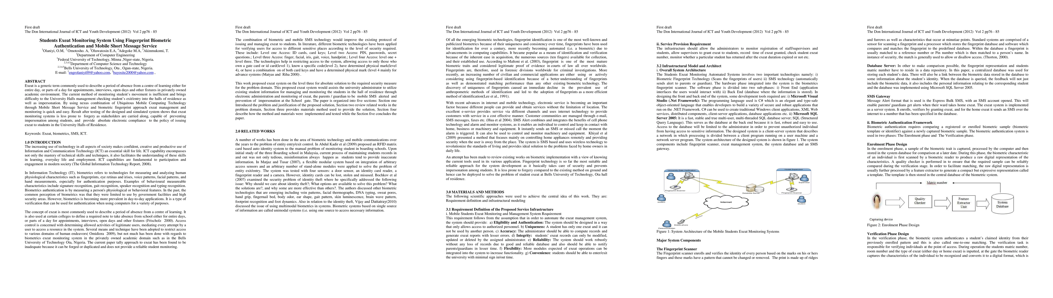 Exeat is a generic term commonly used to describe a period of absence from a centre of learning either for entire day, or parts of a day for appointments, interviews, open days and other fixtures in privately owned academic environment. The current method of monitoring students movement is inefficient and brings difficulty to the University Halls management checking students exit or entry into the halls of residence as well as impersonation. By using nexus combination of Ubiquitous Mobile Computing Technology through Mobile Short Message Service and biometric fingerprint approach exeat management and monitoring is quick and easy. Result after testing of the designed and simulated system shows that exeat monitoring systems is less prone to forgery as stakeholders are carried along, capable of preventing impersonation among students, and provide absolute electronic compliance to the policy of issuing exeat to students in the University Halls of Residence.