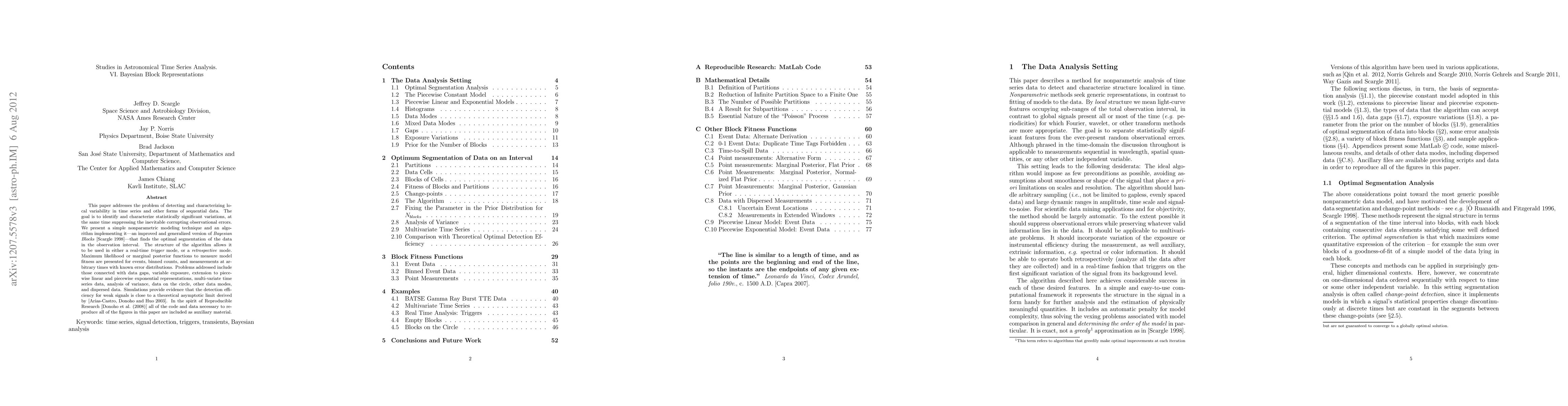 This paper addresses the problem of detecting and characterizing local variability in time series and other forms of sequential data. The goal is to identify and characterize statistically significant variations, at the same time suppressing the inevitable corrupting observational errors. We present a simple nonparametric modeling technique and an algorithm implementing it - an improved and generalized version of Bayesian Blocks (Scargle 1998) - that finds the optimal segmentation of the data in the observation interval. The structure of the algorithm allows it to be used in either a real-time trigger mode, or a retrospective mode. Maximum likelihood or marginal posterior functions to measure model fitness are presented for events, binned counts, and measurements at arbitrary times with known error distributions. Problems addressed include those connected with data gaps, variable exposure, extension to piecewise linear and piecewise exponential representations, multi-variate time series data, analysis of variance, data on the circle, other data modes, and dispersed data. Simulations provide evidence that the detection efficiency for weak signals is close to a theoretical asymptotic limit derived by (Arias-Castro, Donoho and Huo 2003). In the spirit of Reproducible Research (Donoho et al. 2008) all of the code and data necessary to reproduce all of the figures in this paper are included as auxiliary material.