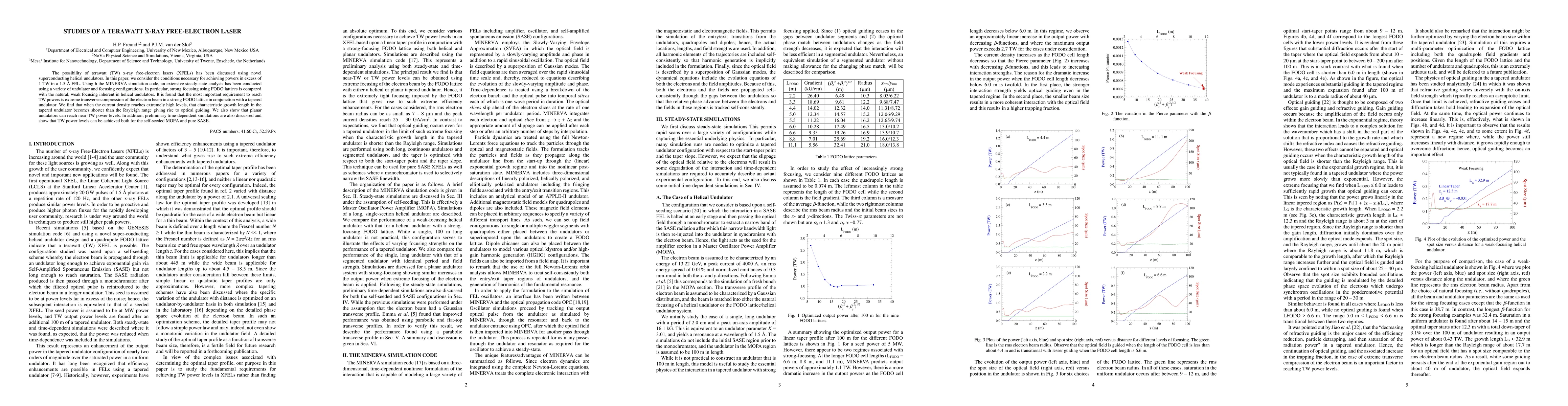 This paper explores the conditions for achieving terawatt (TW) power levels in x-ray free-electron lasers (FELs) using simulations. It highlights that extreme transverse compression of the electron beam in strong FODO lattices is crucial for reaching TW power, surpassing the role of the undulator.