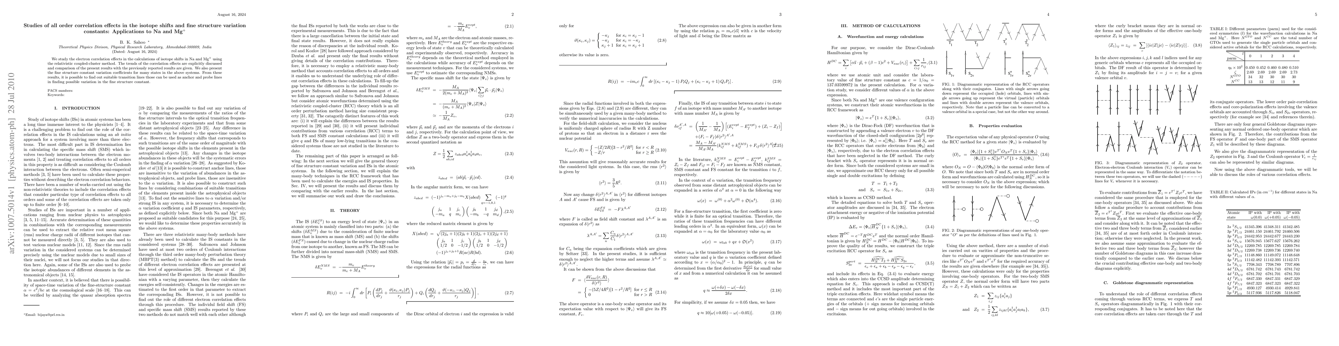 We study the electron correlation effects in the calculations of isotope shifts in Na and Mg+ using the relativistic coupled-cluster method. The trends of the correlation effects are explicitly discussed and comparison of the present results with the previously reported results are given. We also present the fine structure constant variation coefficients for many states in the above systems. From these results, it is possible to find out suitable transition lines those can be used as anchor and probe lines in finding possible variation in the fine structure constant.