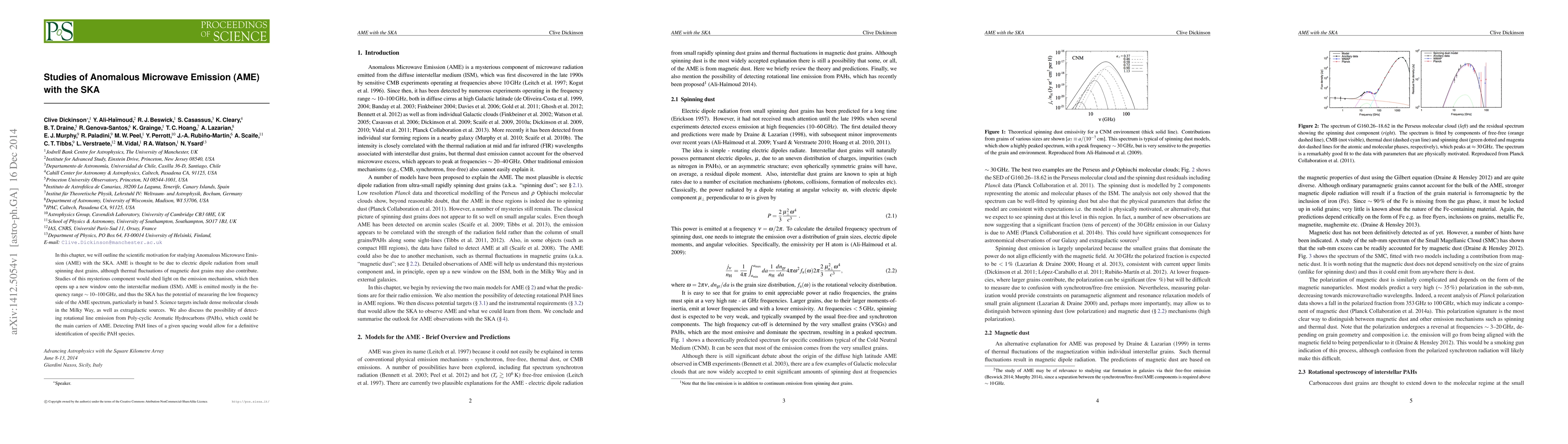 This paper explores the scientific rationale behind studying Anomalous Microwave Emission (AME) using the SKA, attributing it to electric dipole radiation from small spinning dust grains. The SKA's capability to measure AME in the 10-100 GHz range will provide insights into the interstellar medium and potentially identify Poly-cyclic Aromatic Hydrocarbons as the main carriers of AME.