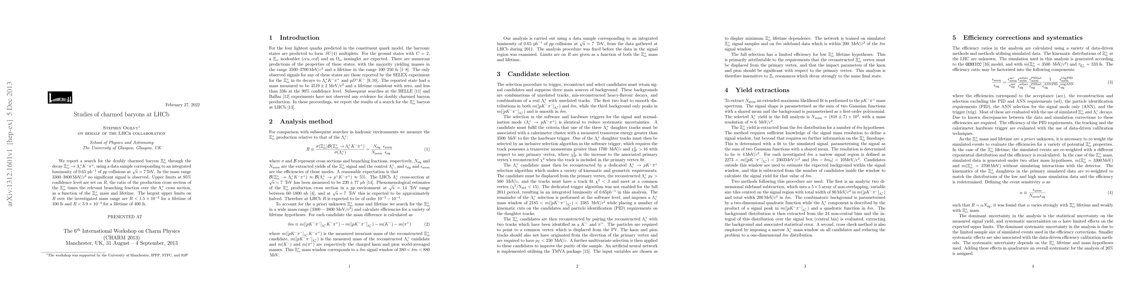 We report a search for the doubly charmed baryon $\Xi_{cc}^{+}$ through the decay $\Xi_{cc}^{+} \to \Lambda_{c}^{+} K^{-} \pi^{+}$, using a data sample corresponding to an integrated luminosity of $0.65~\mathrm{pb^{-1}}$ of $pp$ collisions at $\mathrm{\sqrt{s}} = 7~\mathrm{TeV}$. In the mass range 3300-3800$~\mathrm{MeV}/c^{2}$ no significant signal is observed. Upper limits at $95\%$ confidence level are set on $R$, the ratio of the production cross section of the $\Xi_{cc}^{+}$ times the relevant branching fraction over the $\Lambda_{c}^{+}$ cross section, as a function of the $\Xi_{cc}^{+}$ mass and lifetime. The largest upper limits on $R$ over the investigated mass range are $R<1.5\times10^{-2}$ for a lifetime of $100~\mathrm{fs}$ and $R<3.9\times10^{-4}$ for a lifetime of $400~\mathrm{fs}$.