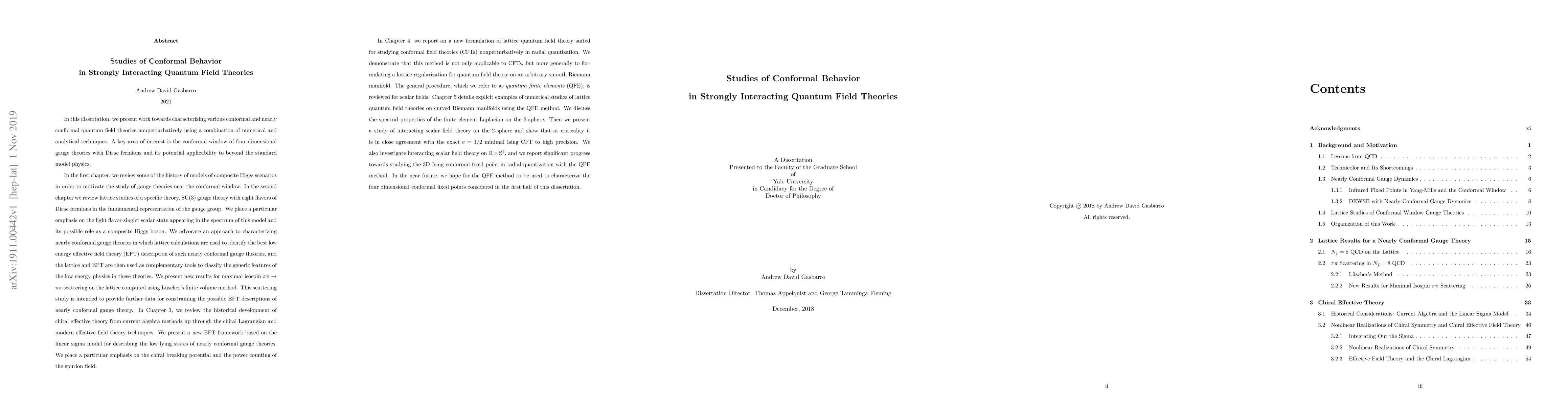 In this dissertation, we present work towards characterizing various conformal and nearly conformal quantum field theories nonperturbatively using a combination of numerical and analytical techniques. A key area of interest is the conformal window of four dimensional gauge theories with Dirac fermions and its potential applicability to beyond the standard model physics. In the first chapter, we review some of the history of models of composite Higgs scenarios in order to motivate the study of gauge theories near the conformal window. In the second chapter we review lattice studies of a specific theory, SU(3) gauge theory with eight flavors of Dirac fermions in the fundamental representation of the gauge group. We place a particular emphasis on the light flavor-singlet scalar state appearing in the spectrum of this model and its possible role as a composite Higgs boson. We advocate an approach to characterizing nearly conformal gauge theories in which lattice calculations are used to identify the best low energy effective field theory (EFT) description of such nearly conformal gauge theories, and the lattice and EFT are then used as complementary tools to classify the generic features of the low energy physics in these theories. We present new results for maximal isospin $\pi\pi \rightarrow \pi\pi$ scattering on the lattice computed using L\"uscher's finite volume method. This scattering study is intended to provide further data for constraining the possible EFT descriptions of nearly conformal gauge theory. In Chapter 3, we review the historical development of chiral effective theory from current algebra methods up through the chiral Lagrangian and modern effective field theory techniques. We present a new EFT framework based on the linear sigma model for describing the low lying states of nearly conformal gauge theories. We place a ... (full abstract within)