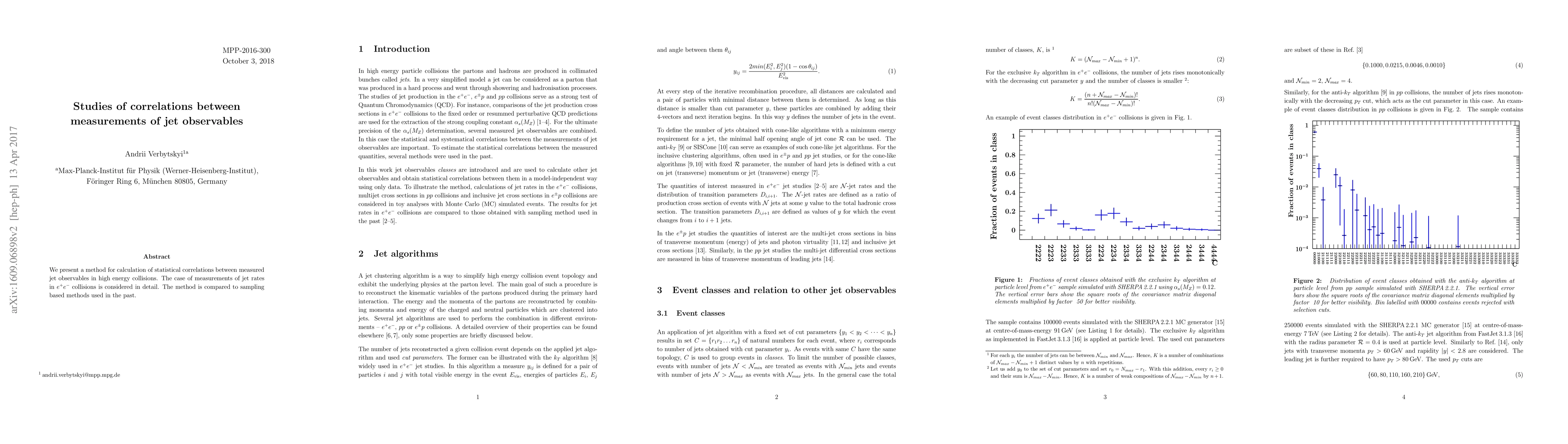 Researchers developed a new method to calculate statistical correlations between jet observables in high-energy collisions, improving upon past sampling-based methods. The study focused on $e^+e^-$ collisions and provided a more accurate assessment of jet rates.